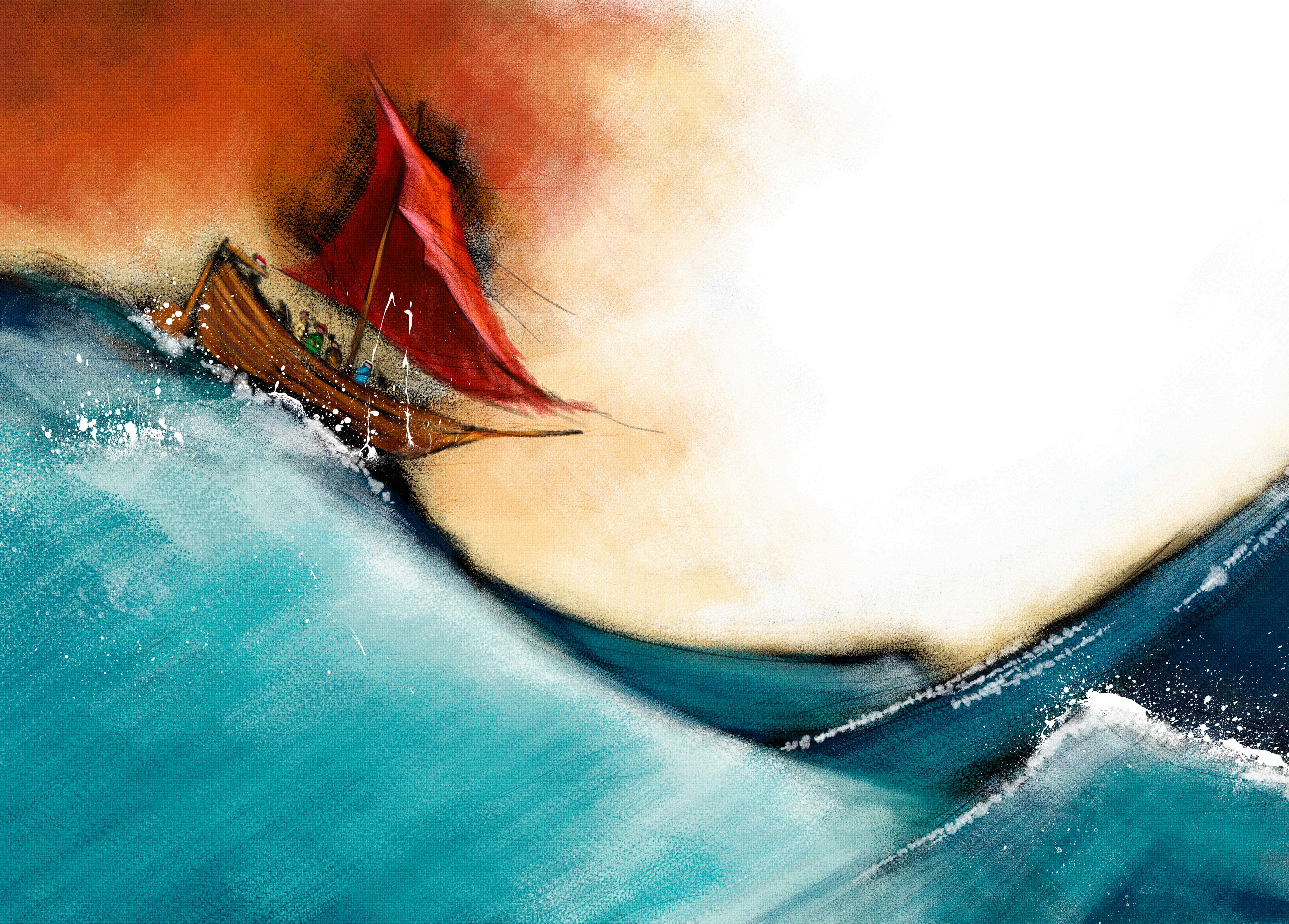 Leben ändern sollen? Nein, das will Jona nicht tun. Ninive ist groß. Und weit weg. Und die Menschen freuen sich bestimmt nicht, wenn Jona ihnen sagt, was Gott von ihnen will. Also läuft Jona bis zum Hafen am großen Meer. Dort geht er an Bord eines Schiffes.