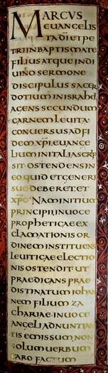 Lorscher Evangeliar, um 810, Anfang des MarkusEvangeliums, Faksimile. © BMNW