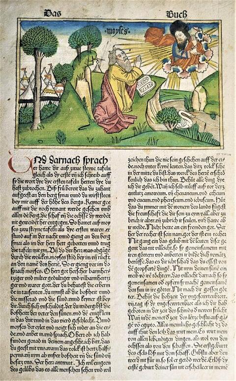 Koberger-Bibel 1483, Mose erhält die Zehn Gebote.