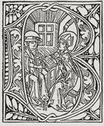 Bildinitiale „B“ aus der Zainer-Bibel: Hieronymus im Gespräch mit Paulinus. © BMNW