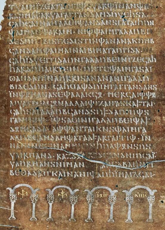 Seite 11: Speyerer Blatt der Ulfilas-Bibel, um 500, Ende des Matthäusevangeliums.