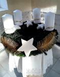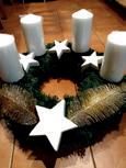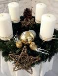 - Kaufen Sie nicht den preisgünstigen Adventskranz vom Discounter. Nehmen Sie eine große fertige Kranzunterlage und binden und dekorieren Sie den Kranz zusammen mit den Schauspielern selbst. Der Adventskranz passt gut auf den Taufstein und sollte mindestens denselben Durchmesser haben wie dieser.