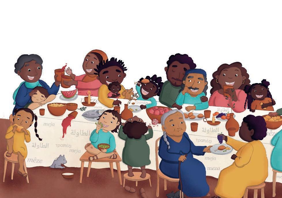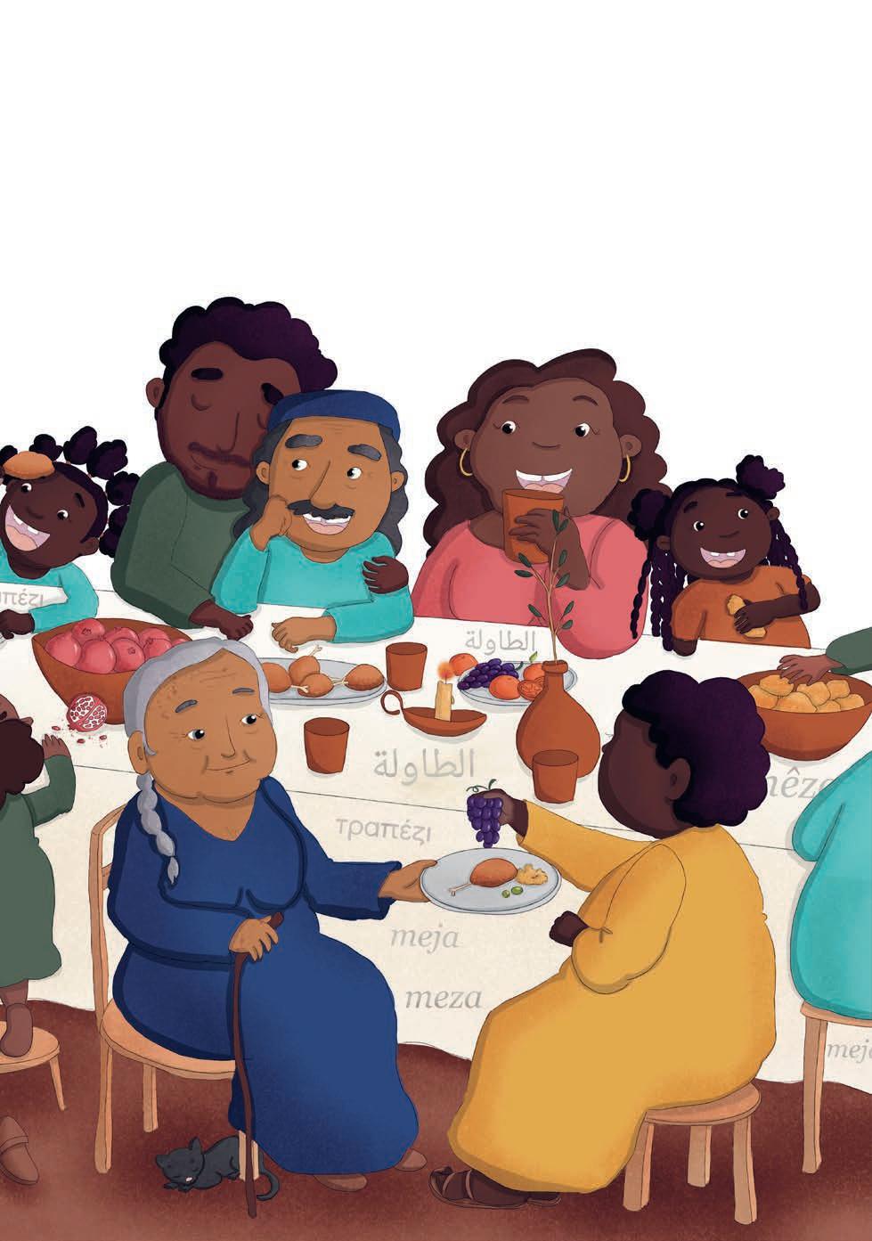Die Autorin bedankt sich bei den vielsprachigen Menschen, die beim Wörtersammeln behilflich waren: Karima Benbrahim, Tayo Awosusi-Onutor, Emmanuel Boango, David Thevanantan, Teamrat Ghebrejesus Kidane, Andar Parlindungan und Baraka Lwakatare.