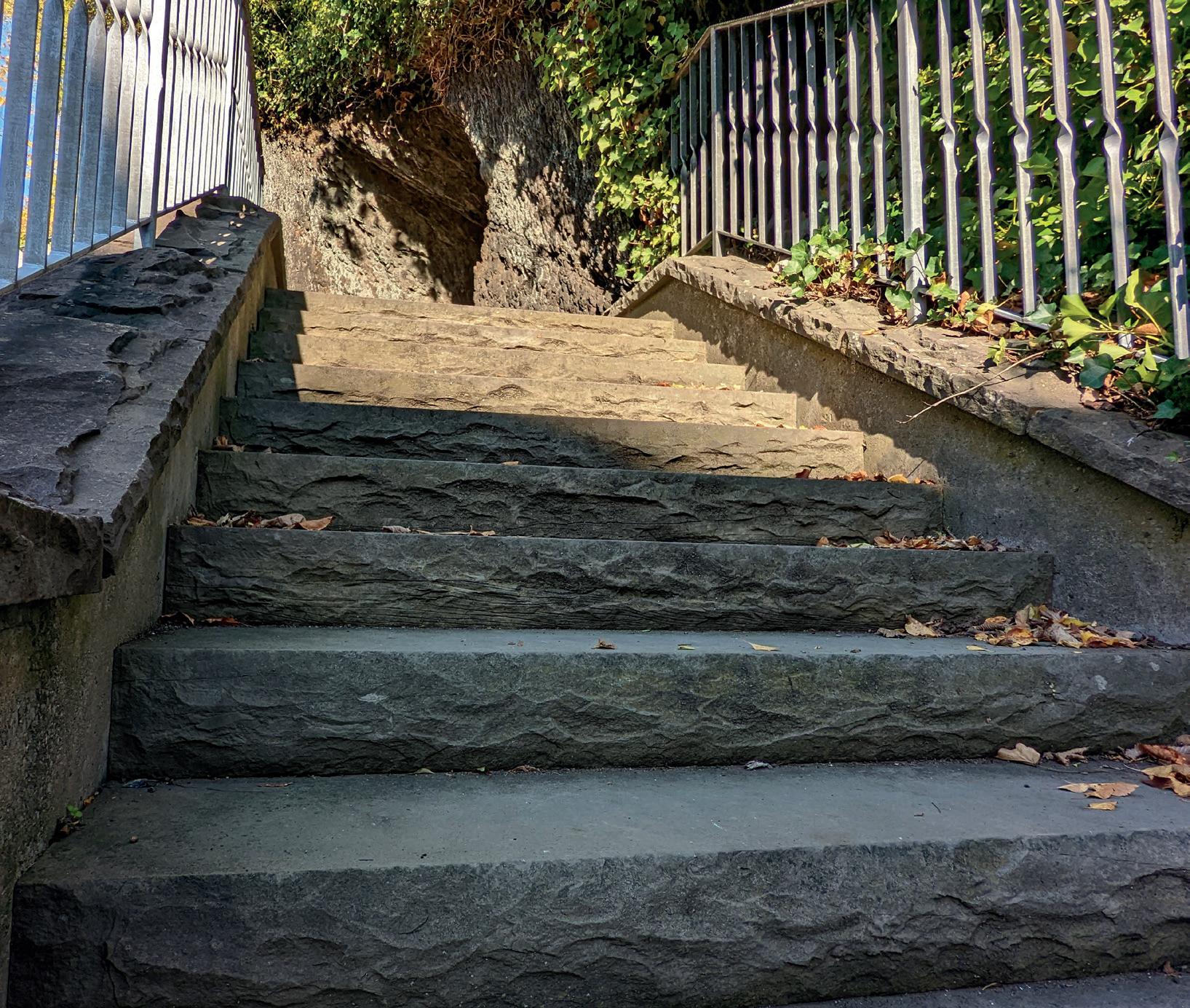 Schade eigentlich, dass ich auf der Suche nach Informationen in der digitalen Welt so oft das übersehe, was ich mit offenen Augen leicht erkennen kann: Alltag ist die Summe von Banalitäten, die das Leben besonders und lebenswert machen. Als ich die Apotheke verlasse, schaue ich nochmal zur anderen Seite rüber. Ich schmunzele. Offenbar hat die Treppe Erkenntnis-Stufen.
