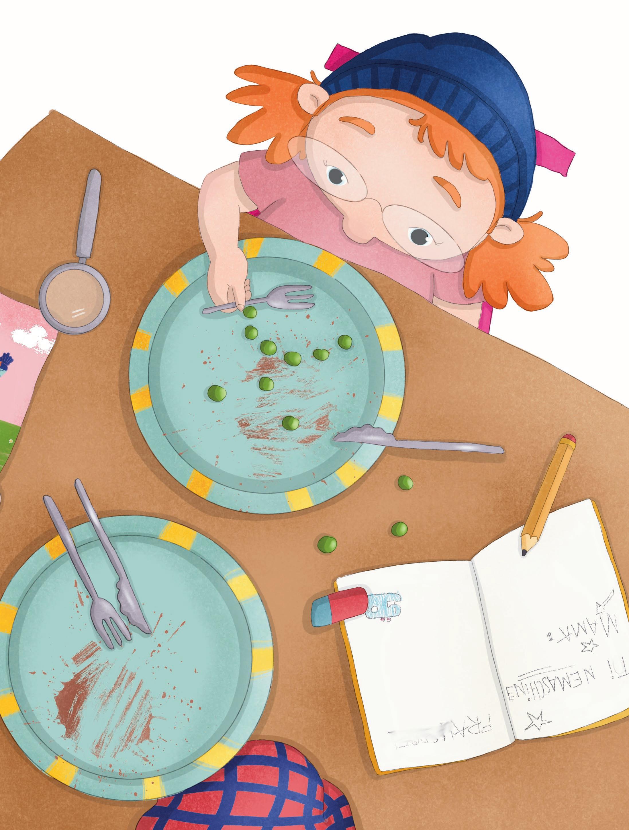 „Ist nicht so!“, stöhnt Margo und schlurft in ihr Zimmer. „Margo! Essen!“, ruft ihre Mutter. Aber Margo hat keinen Hunger. Ihre Mutter hat behauptet, Herr Andersen hätte die Nähmaschine von Frau Stoffel gestohlen. Sie stand im Flur und nun ist sie verschwunden.