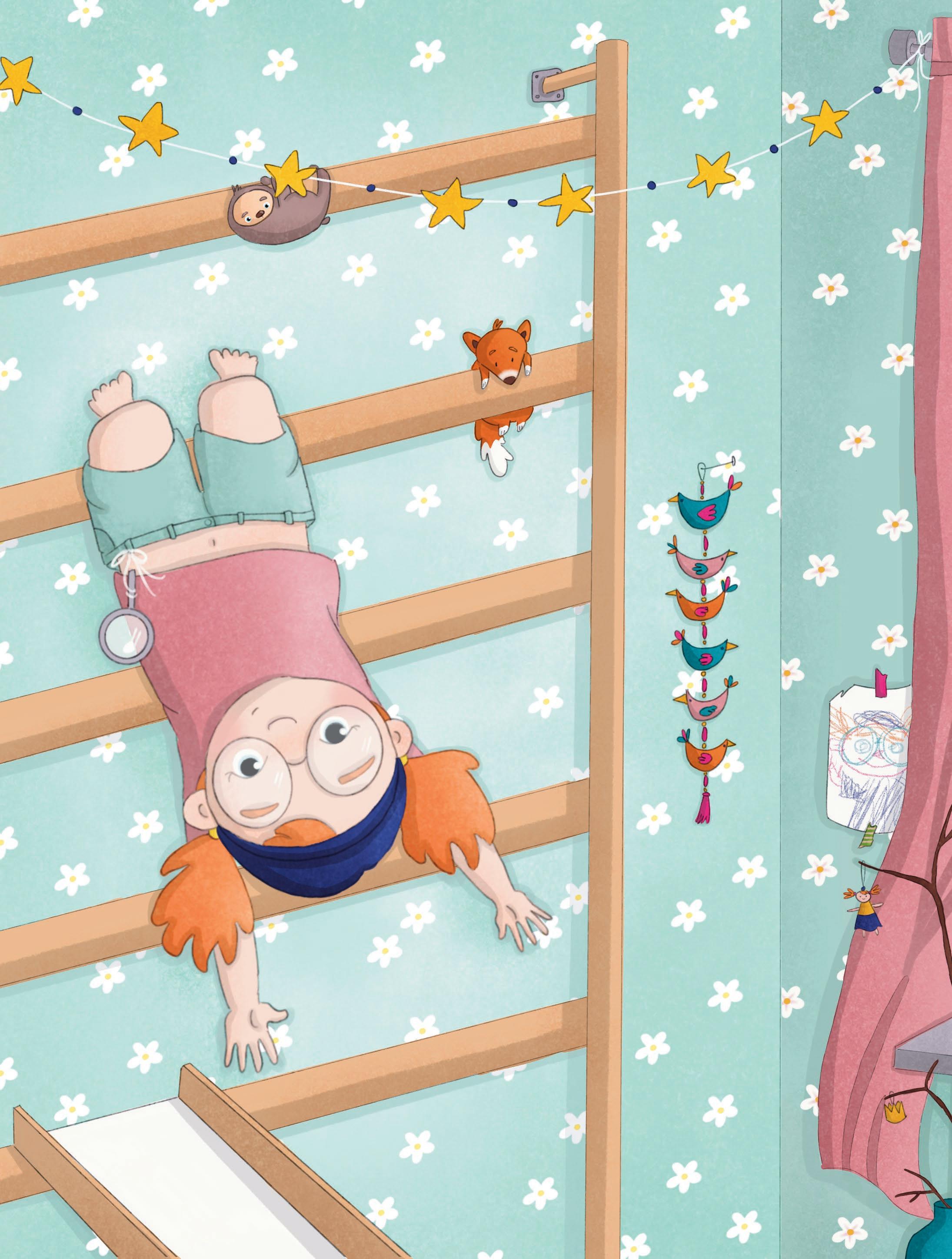 Margo hängt sich kopfüber an ihre Turnstange. So kann sie besser nachdenken. Doch gerade jetzt fällt ihr nichts ein.
