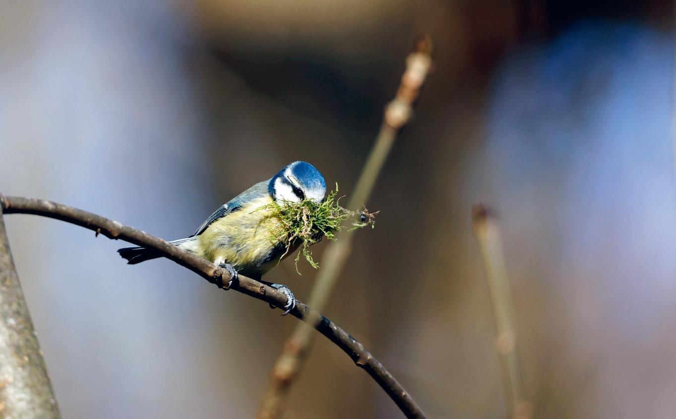 Regungslos liege ich mit meiner erst wenige Wochen alten Tochter auf unserem Gartenstuhl. Wenn ich ganz leise bin, höre ich es neben mir aufgeregt zwitschern, direkt aus meinem Lieblingsapfelbaum mit den roten Früchten. Nach ein paar Minuten entdecke ich auf einmal eine Meisenmama, die etwas im Schnabel hält und zu dem kleinen Loch im Stamm fliegt. Plötzlich wird mir klar: In unserem Apfelbaum nisten Blaumeisen!