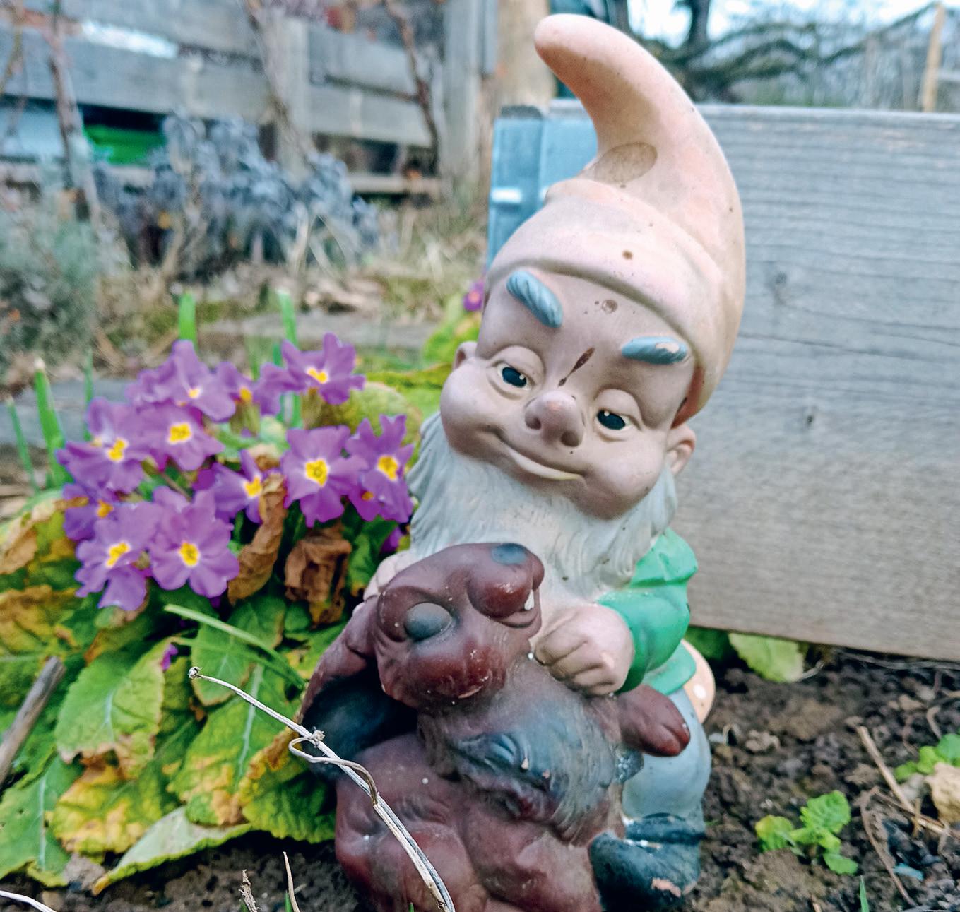 Ich kämpfe gegen Schnecken, Dornen und Unkraut, das ich wieder und immer wieder aus den Beeten ziehe. Und in die Lücken, da pflanze ich bunte Primeln.