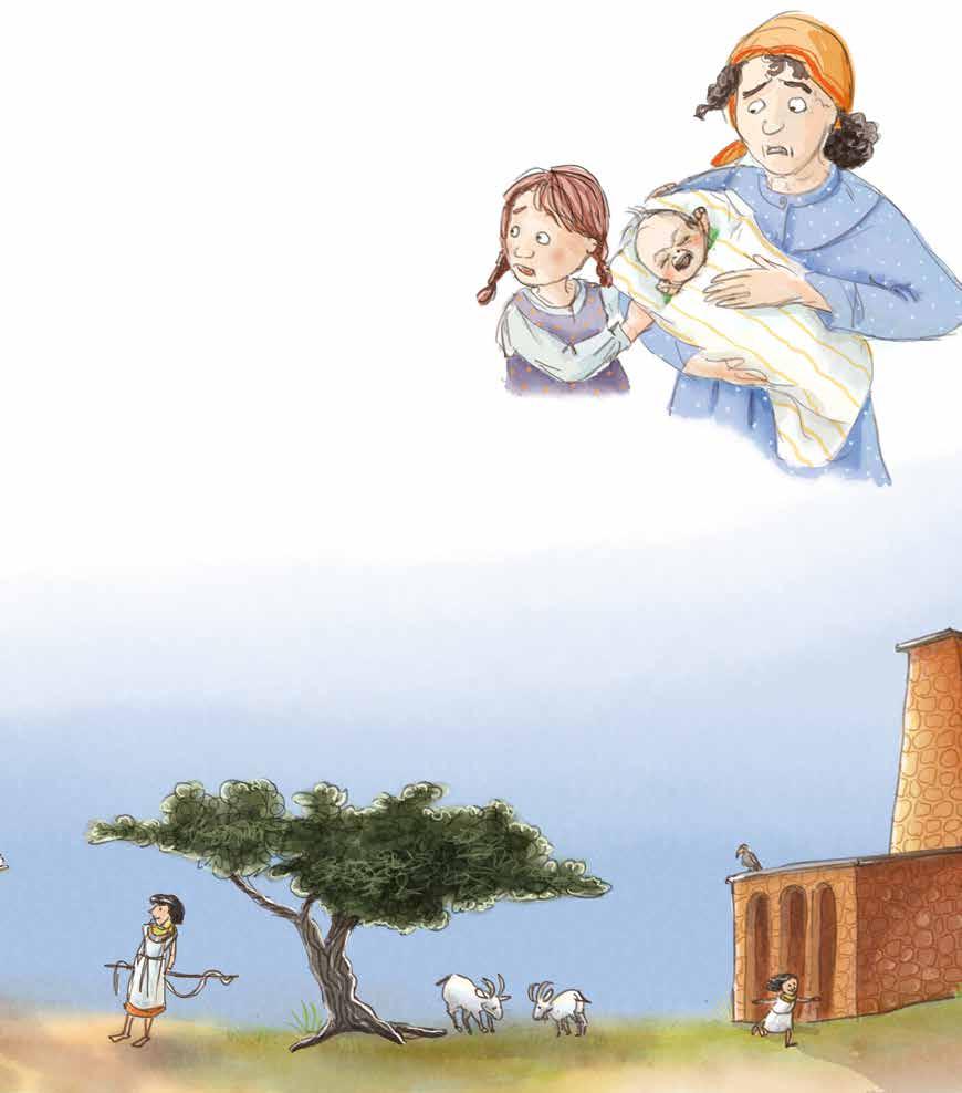 Ich heiße Miriam und will euch die Geschichte von meinem kleinen Bruder Mose erzählen. Er wurde geboren, als ich sieben Jahre alt war.