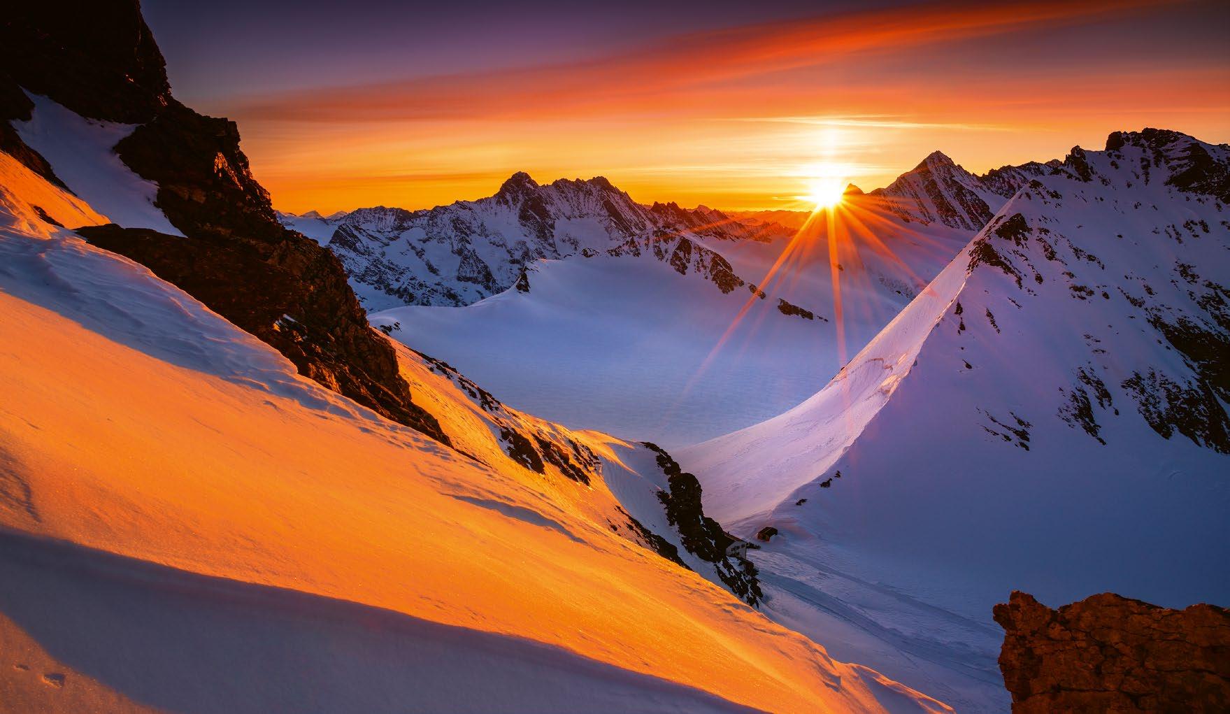 Dezember Fiescherhorn und Mönchsjoch, Wallis, Schweiz