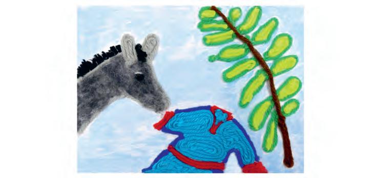 Kompetenzen: DieKinderkönnenzueinerGeschichteMotiveentwickeln.Siekönnen durchdasAufzeichnenvonFormenunddasKlebenmitFädengestaltenundverbinden.
