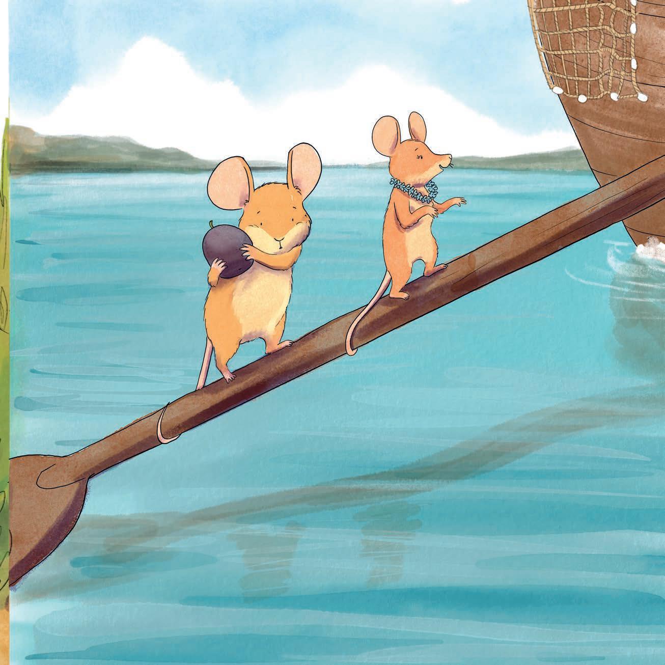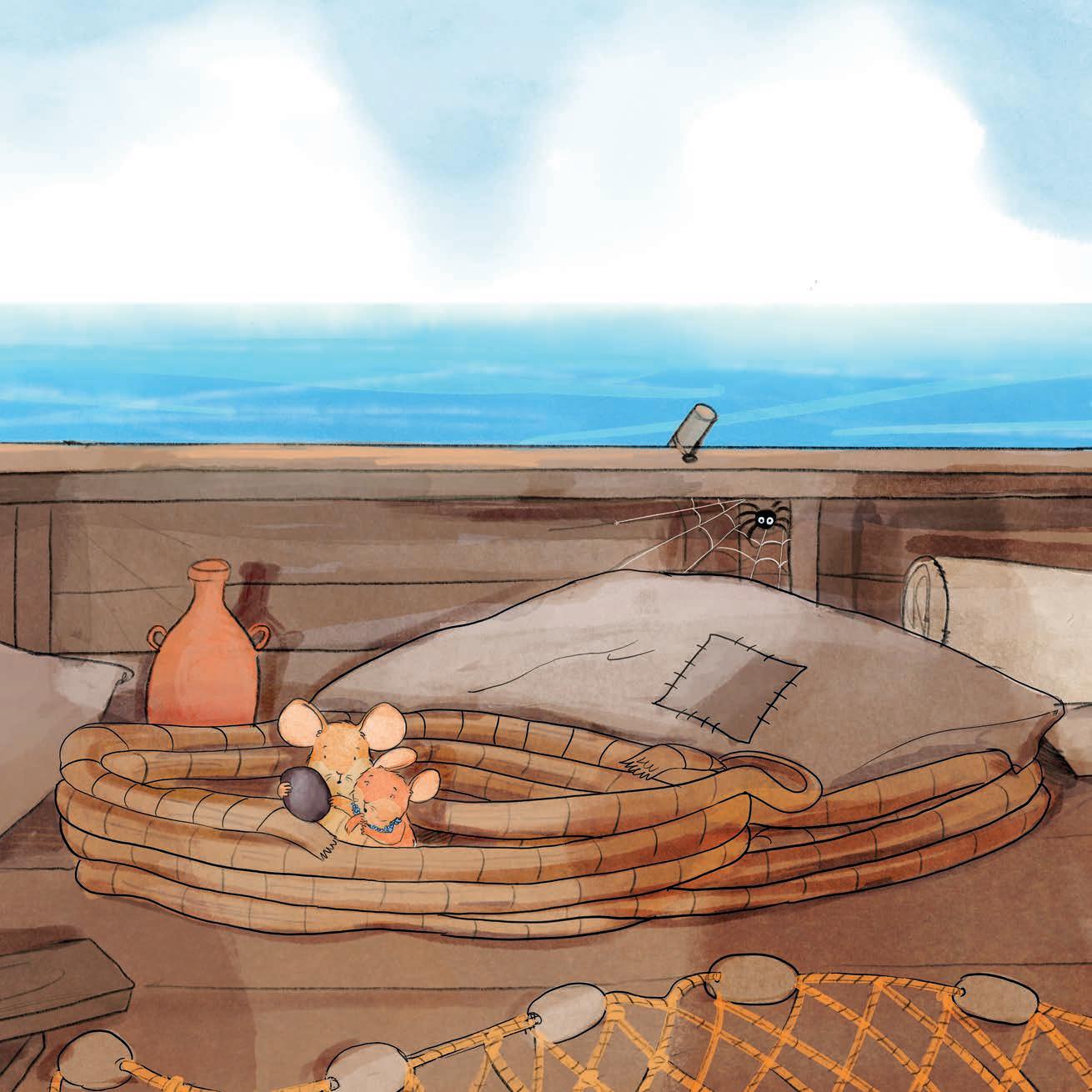 „Sie kommen! Schnell, spring ins Boot!“, quiekt Knabber und hüpft auf den Holz-