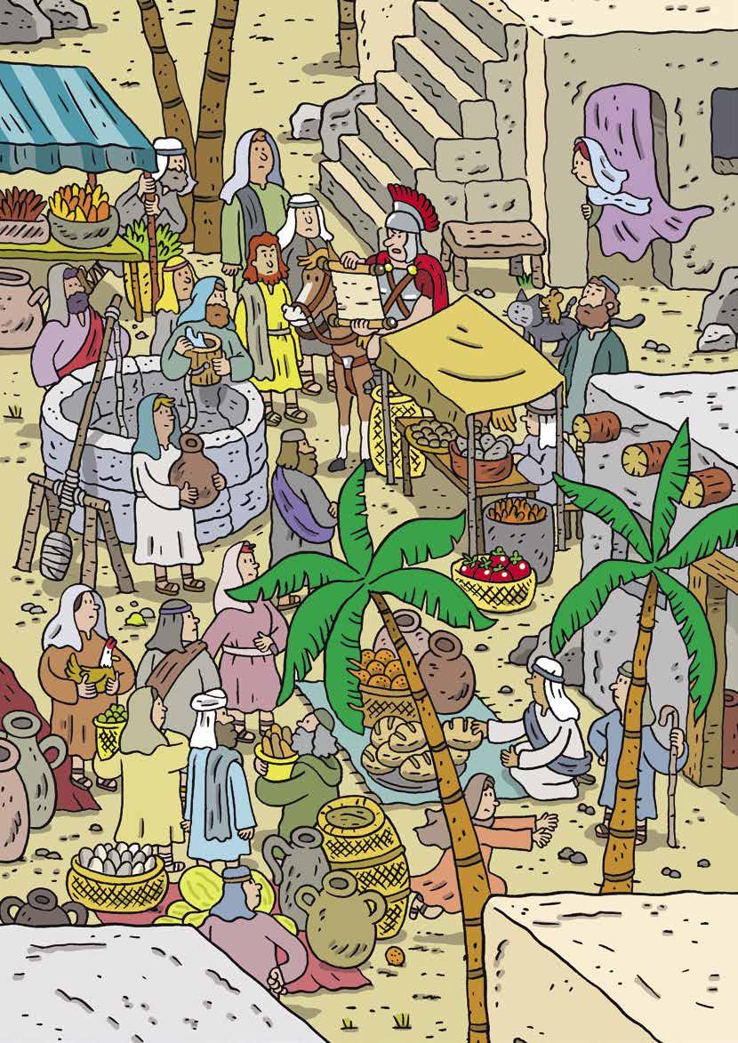 Der Bote zügelte sein Pferd. Dann rief er laut: »Ich komme aus Rom mit einer Nachricht des Kaisers Augustus! Er möchte alle Menschen seines Landes zählen. Dafür muss jeder in seine Heimatstadt reisen und sich dort in eine Liste eintragen lassen.«