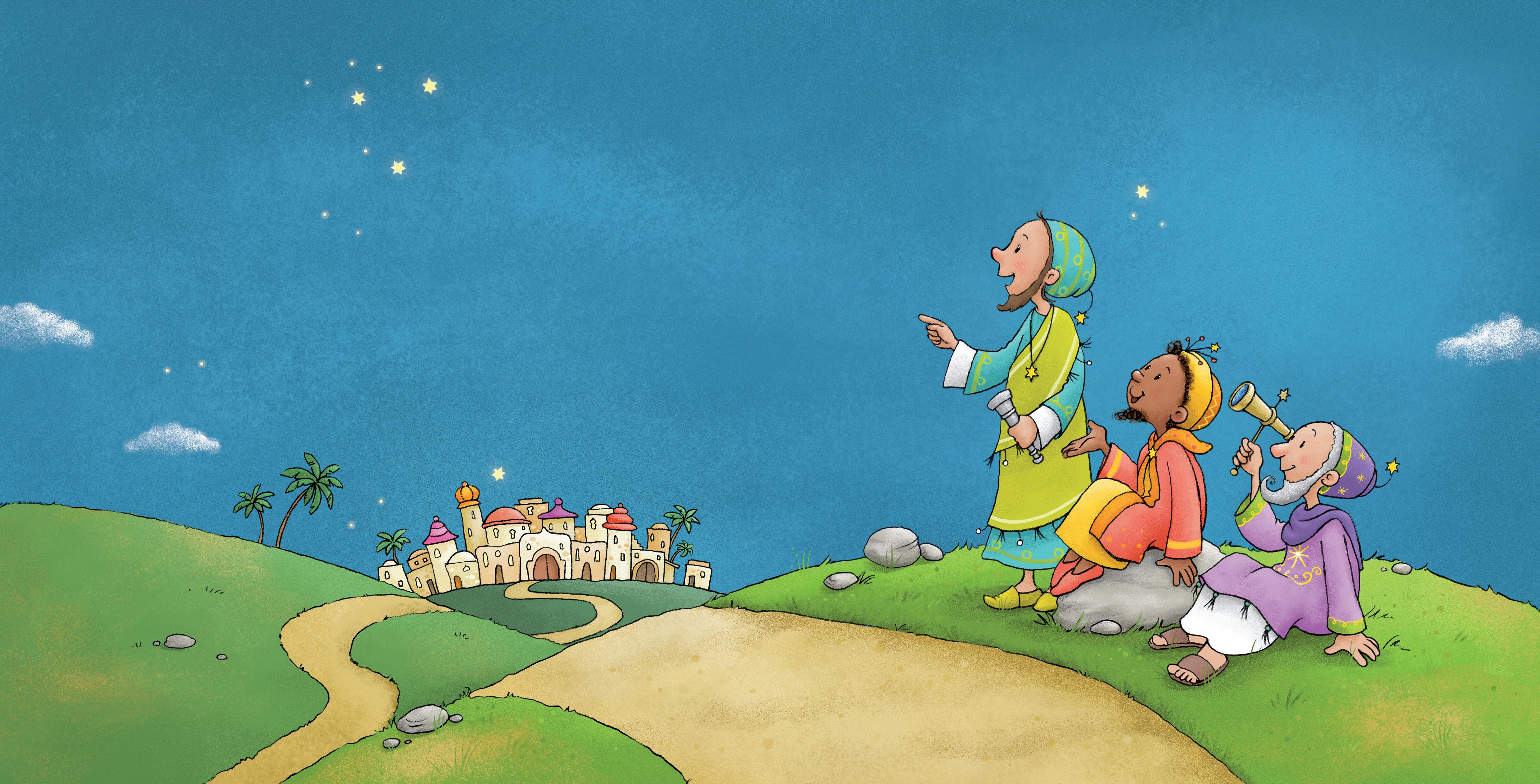 Vor langer Zeit lebten in einem fernen Land drei kluge Männer. Weil sie so viel wussten, nannte man sie „die drei Weisen“. Die Weisen sahen sich oft die Sterne an.