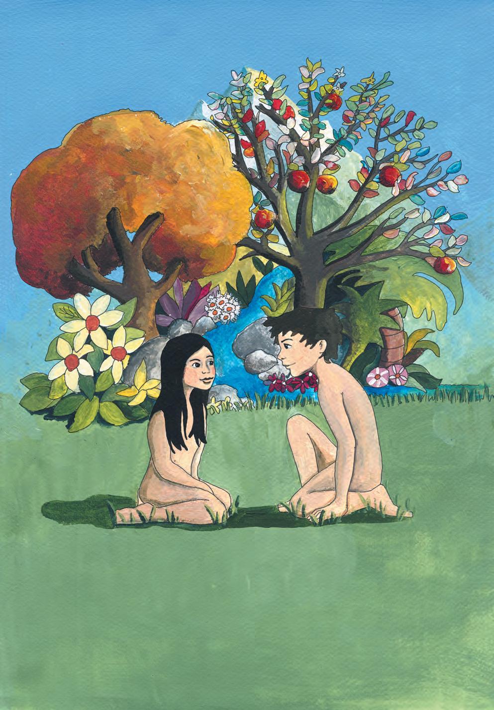 Sie streckte die Hand aus, nahm eine Frucht und biss hinein, und sie gab auch ihrem Mann davon zu essen. Genau wie die Schlange gesagt hatte, sahen sie die Welt plötzlich mit ganz anderen Augen. Aber es war ein anderes Gefühl, als die Frau gedacht hatte. Sie schämten sich nämlich schrecklich; zuerst einmal dafür, dass sie nackt waren. Sie rissen Blätter vom Feigenbaum, banden sie zusammen und machten sich Röcke daraus. Denn sie dachten, wenn sie ihre Körper zudeckten, würden sie sich besser fühlen.