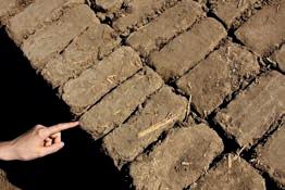 Im Grab von Rechmire, dem Wesir Thutmosis’ III. (Theben-West / 15. Jh. v.Chr.), ist detailreich die Herstellung von Ziegeln durch Sklaven dargestellt. Aus einem Teich wird Wasser geschöpft, die Erde angefeuchtet und mit Hacken zu einem lehmigen Brei verarbeitet. Dann mischt man Strohhäcksel dazu. Die Lehmmasse wird in Holzkästen geformt. Die angetrockneten Ziegel nimmt man aus den Holzformen und lässt sie in der Sonne völlig trocknen und hart werden. Das kleine Bild oben zeigt Lehmziegel, an denen das beigemischte Stroh noch heute deutlich sichtbar ist. Nach ägyptischen Texten soll die Tagesleistung eines Sklaven bei 50 Ziegeln gelegen haben.