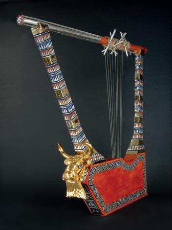 Der biblische Bericht von Abraham, dem Stammvater Israels, beginnt während seiner Zeit in Ur in Chaldäa (1Mo 11,27ff), das zu den bedeutendsten Städten Mesopotamiens gehörte (Südbabylon; heute: Irak). Die Bewohner von Ur besaßen schon fünf Jahrhunderte vor Abraham eine hoch entwickelte Kultur. Die Lyra mit dem goldenen Stierkopf ist eine detailgetreue Nachbildung aus den Königsgräbern von Ur. Das Zupfinstrument (Leier) wurde zur musikalischen Unterhaltung benutzt.