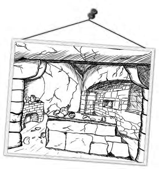 „Wow! Schaut euch das mal an!“ Sarah staunte nicht schlecht. „Wenn ich nicht irre, ist das in der Mitte dieses Raums eine mittelalterliche Kochstelle. Hier sind sogar noch Krüge oder zumindest was davon noch übrig ist.“