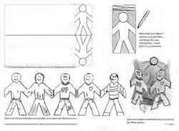 Der Mitarbeiter bereitet für jedes Kind eine Menschenkette vor (s. V 27-06.pdf). Dazu entweder die Vorlage (V 27-07.jpg) auf A4 ausdrucken oder in größerem Maßstab auf Tonpapier aufmalen: Rechteck aus Tonpapier (35 x 15 cm) vier Mal wie eine Ziehharmonika falten (vor und zurück). Die Kinder malen die Personen „ihrer Familie“ an (Vater, Mutter, Geschwister, sich selbst ...). Anschließend wird die Kette zusammengeklebt. Das bedeutet: Als Familie halten wir zusammen. In die Mitte stellen wir ein Licht = Zeichen für Gott, der in der Mitte steht und unserer Familie wichtig ist. (Idealerweise für die Kleinen ein LED-Teelicht mit Batterie oder ein echtes Teelicht in einem Glas zum Schutz. Achtung: Kerzen immer den Eltern aushändigen).