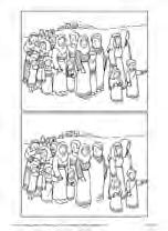 3.4.1 Wir kopieren das Suchbild (V 27-02.jpg) für jedes Kind. Die Reisegesellschaft hat nicht bemerkt, dass jemand fehlt. Die Kinder sollen herausfinden, wer auf dem unteren Bild nicht mehr da ist. Sie zeichnen nun die fehlende Person ein und malen beide Bilder anschließend aus.