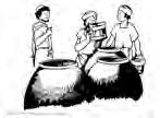 3.2.2 Wir lassen die Kinder sechs Krüge/Kannen suchen, die wir vorher im Raum versteckt haben. Danach stellen wir sie auf und erinnern damit an die Geschichte. (Diese Krüge können später auch für das Spiel 3.4.1 genutzt werden).