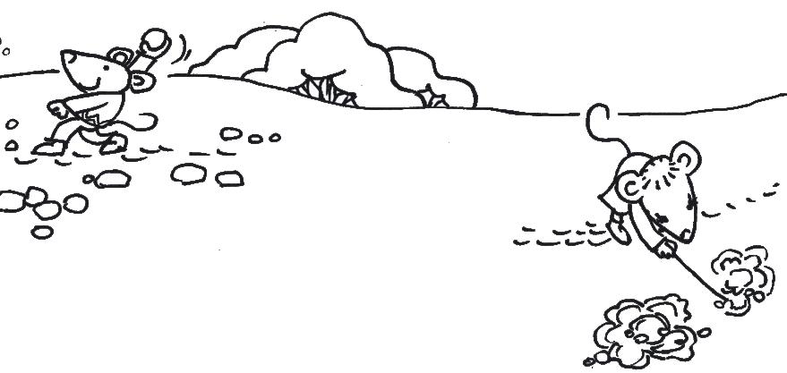 Klara hatte ein ganz besonderes Merkmal: Zwischen ihren beiden Öhrchen schaute ein tellerrunder, kahler Fleck hervor. Außerdem sausten in ihrem kleinen Kopf fast pausenlos unzählige Gedanken hin und her und auf und nieder und rundherum. Gedanken über Dinge und Gedanken über das Denken. Und jedermann konnte sehen, dass Klaras Mäuseköpfchen voll war mit solchen Gedanken. Denn immer dann, wenn sie besonders viel nachdachte, färbte sich die tellerrunde, ratzekahle Stelle in ihrem Fell rötlich.