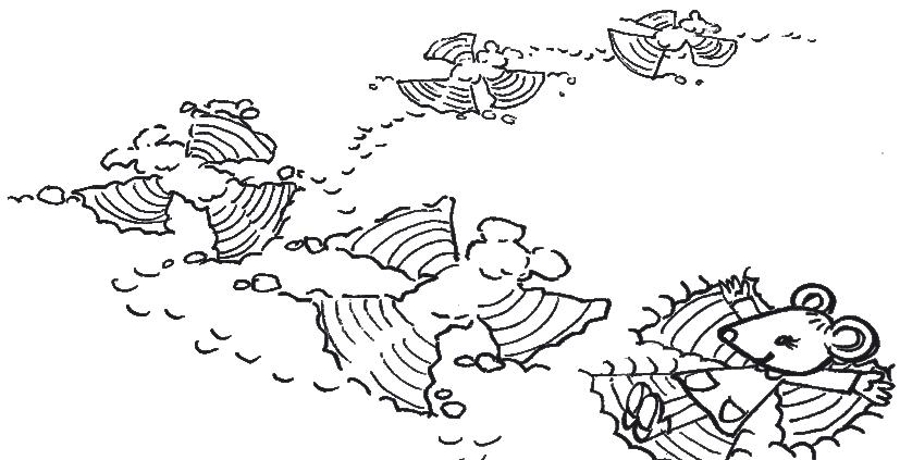 Klara ließ sich neben dem sprudelnden Quellwasser in den Schnee fallen und lauschte dem Plätschern des Baches. Verträumt schaute sie in den Himmel, an dem sie ein paar weiße Federwölkchen entdeckte. Die Wolken sahen aus wie gemalt und schwebten langsam über die blaue Fläche. Klara schloss die Augen. In ihrem Kopf wurden die Wolken zu weißen Figuren, die in ganzen Scharen durch ihre Gedanken zogen: große, kleine, dicke, dünne, freundlich winkende und grimmig dreinschauende. Den Figuren folgten die Geschichten, die in ihrem Kopf zu entstehen begannen. Ob der Grimmige durch den freundlich Winkenden wohl ein bisschen freundlicher würde? Könnte der schnaufende Dicke den Dünnen wohl noch einholen? Oder war der Große mit seinen Riesenschritten am Ende doch der Schnellste?