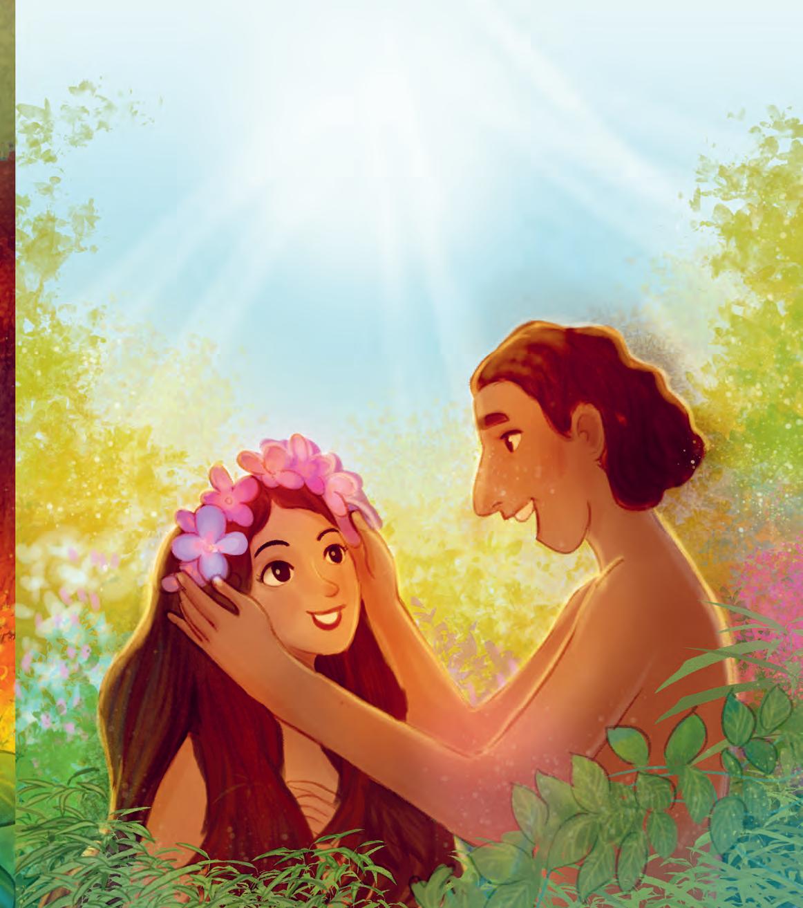 Sie war in Gottes Bild geschaffen, genau wie Adam! Adam nannte sie Eva. Gott vereinte sie in Liebe, und sie sollten nie wieder getrennt werden.