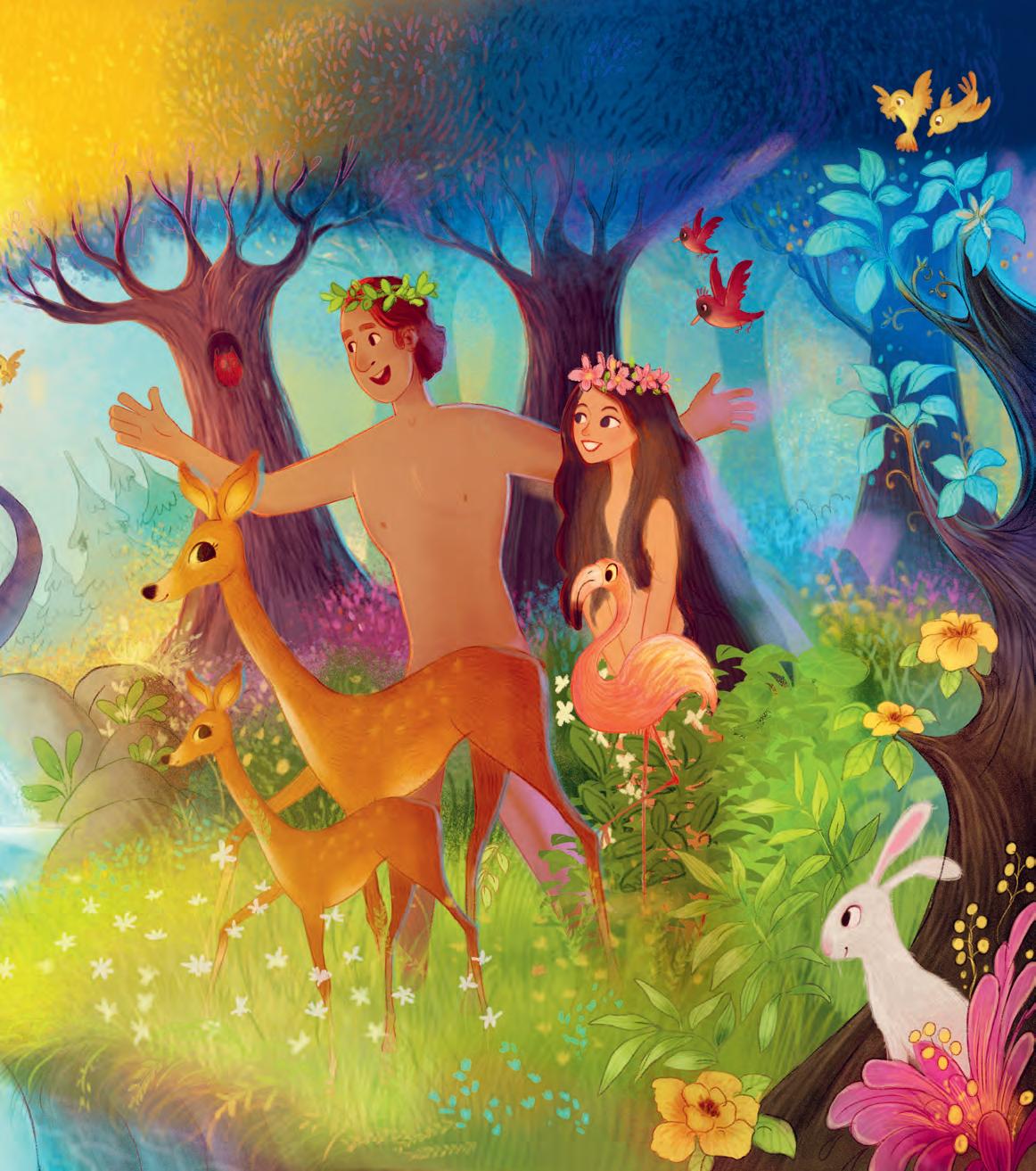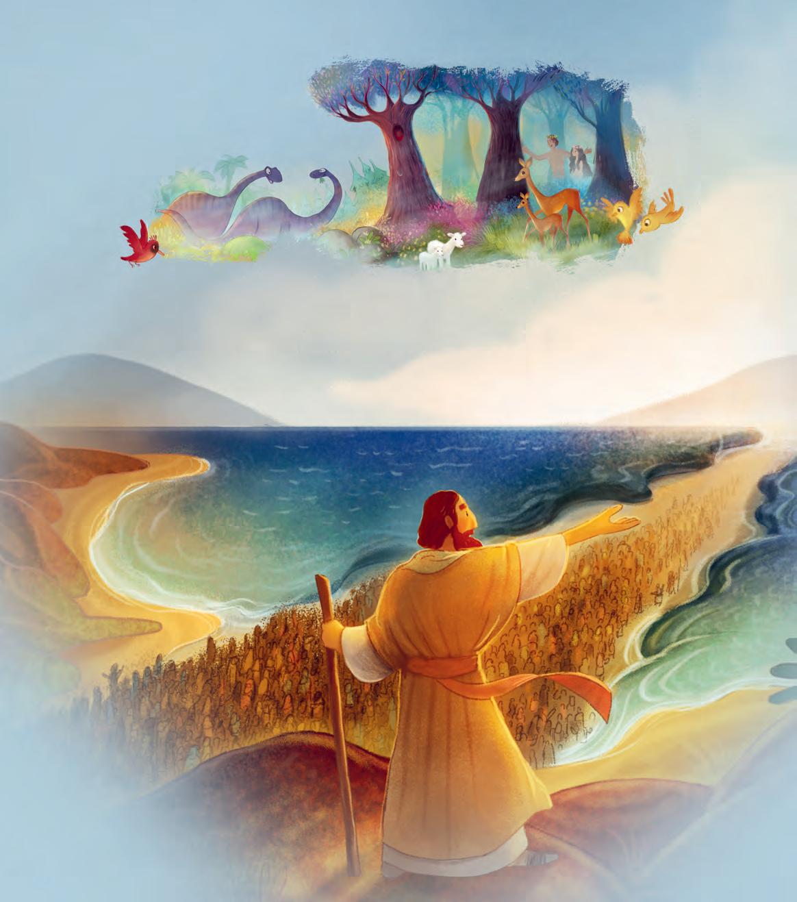 Gott sprach sechs Tage lang und schuf jeden Morgen ein neues Wunder. Gott sagte: »Es werde Licht!« Und das Licht schien. »Es werde Wasser!« Und die Meere schlugen Wellen. »Es werde Land!« Und Berge erhoben sich. »Es gebe Pflanzen!« Und Bäume sprossen aus dem Boden. »Es gebe Tiere!« Und Vögel flogen, Fische schwammen und alle Arten von Tieren liefen herum. Die ganze Schöpfung wurde durch Gottes Wort aus dem Nichts erschaffen, von den funkelnden Sternen am Himmel bis hin zu den kleinsten Sandkörnern. Die ganze Schöpfung verkündete Gottes Herrlichkeit und Güte.Gott freute sich an seiner Welt und sagte: »Es ist gut.« Doch das Beste sollte noch kommen. Gott hatte große Pläne für diese gute Welt.
