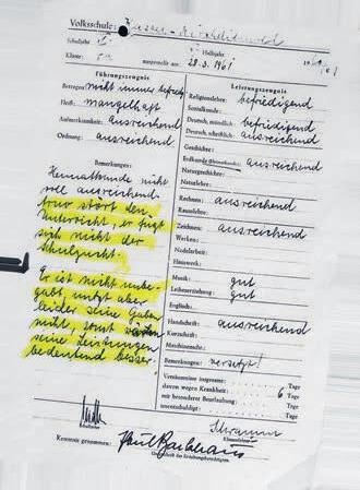 »Arno könnte bei mehr Fleiß mehr leisten. Arno stört den Unterricht, er fügt sich nicht der Schulzucht, […] er ist nicht unbegabt, nutzt aber leider seine Gaben nicht, sonst wären seine Leistungen bedeutend besser.«