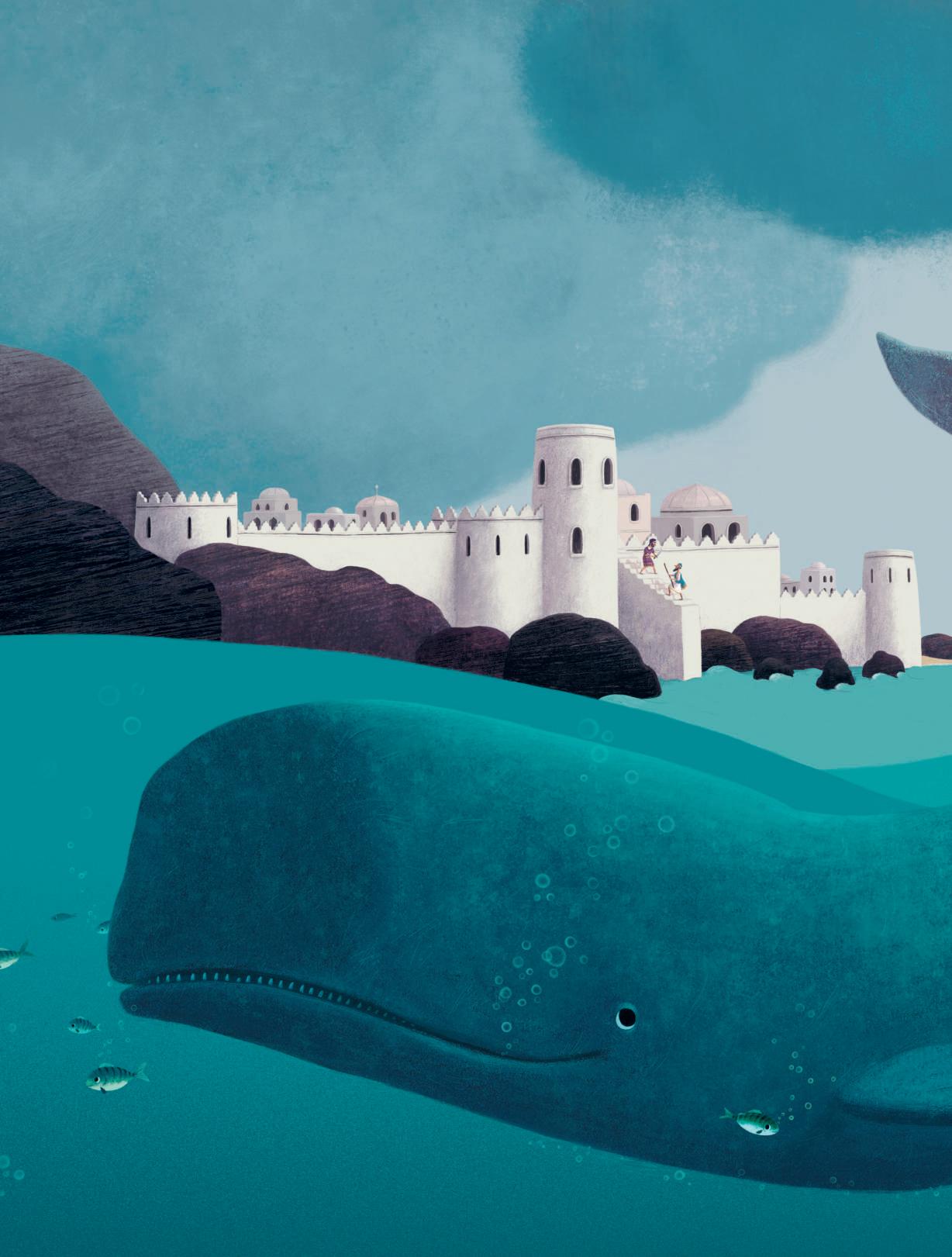 Vielleicht bist du mit den Seeleuten auf dem Schiff? Nein, denn die haben dich ins Meer geworfen. Bist du vielleicht auf dem Meeresgrund? Nein, denn ein großer Wal hat dich verschluckt.