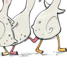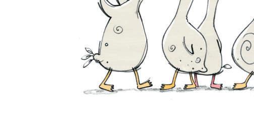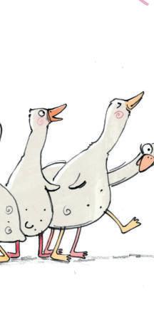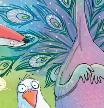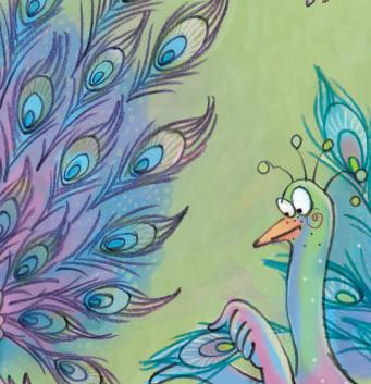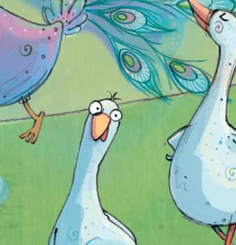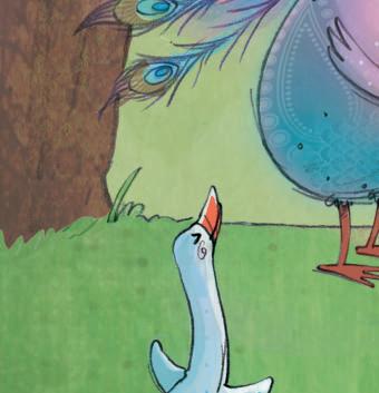 „Schaut, wie schön unsere Federn sind“, sagten die Pfauen stolz und schlugen ein Rad. „Sind wir nicht elegant, wenn wir so laufen?“, schnatterten die Gänse.