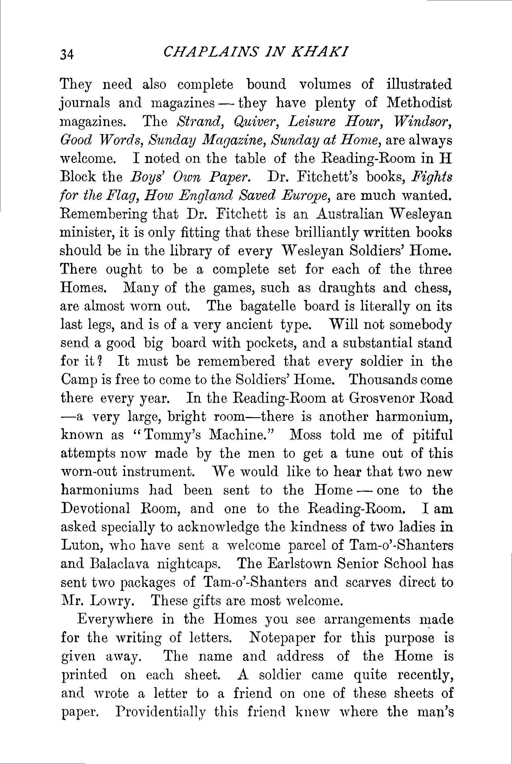 The chapters, like the Acts of the Apostles, are unfinished. As we write, new letters are appearing in the Methodist press. Some may think it would have been better to wait until the close of the war before publishing, and thus to have secured completeness, and also the great advantage of revision by the writers. This, however, could not be done. At present there is an urgent demand for republication. When the war ends, interest now keen will rapidly fade. If the volume is to have a wide circulation, which in the interests of our soldiers and sailors, and of the work their chaplains are doing, is most desirable, it must be published at once.