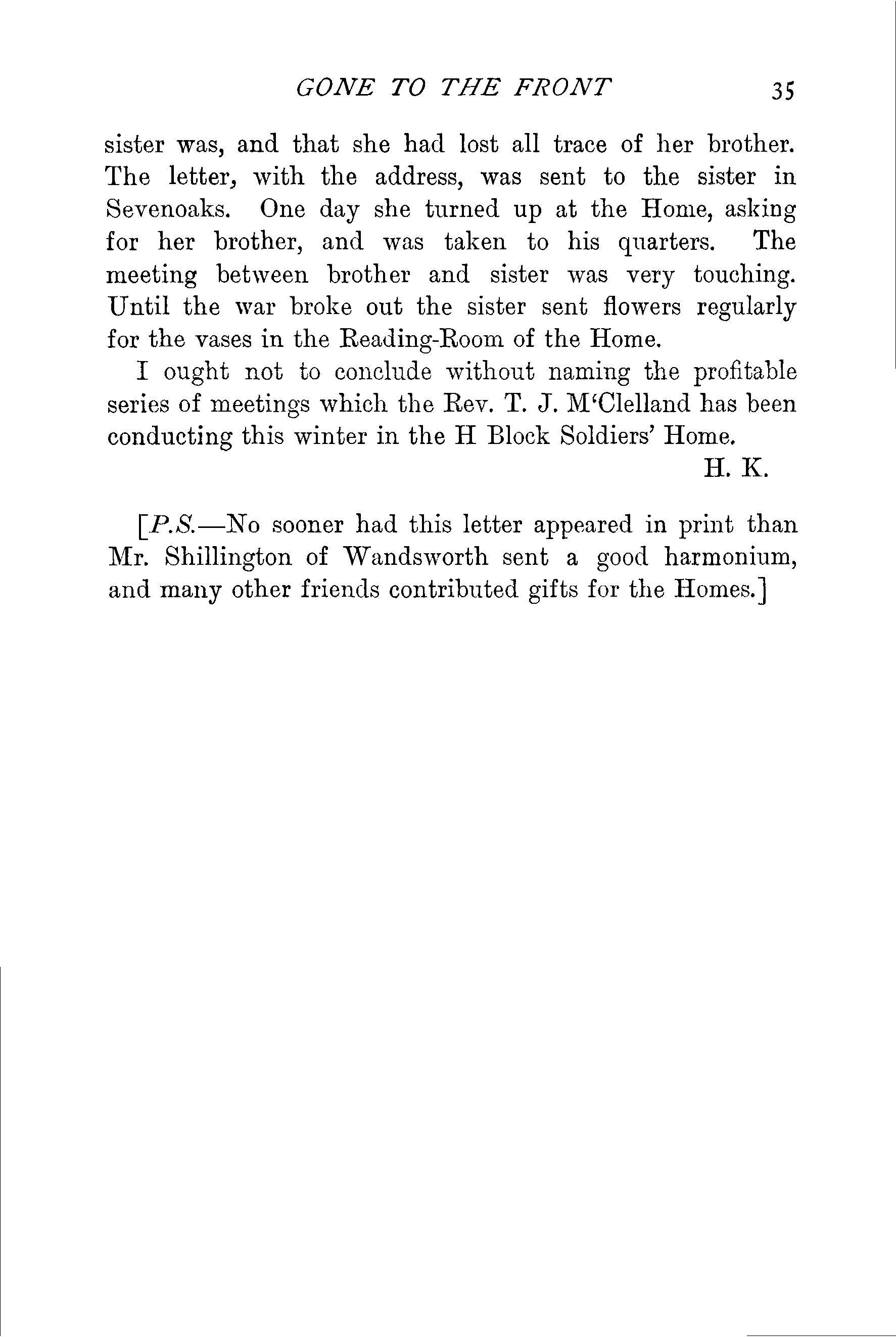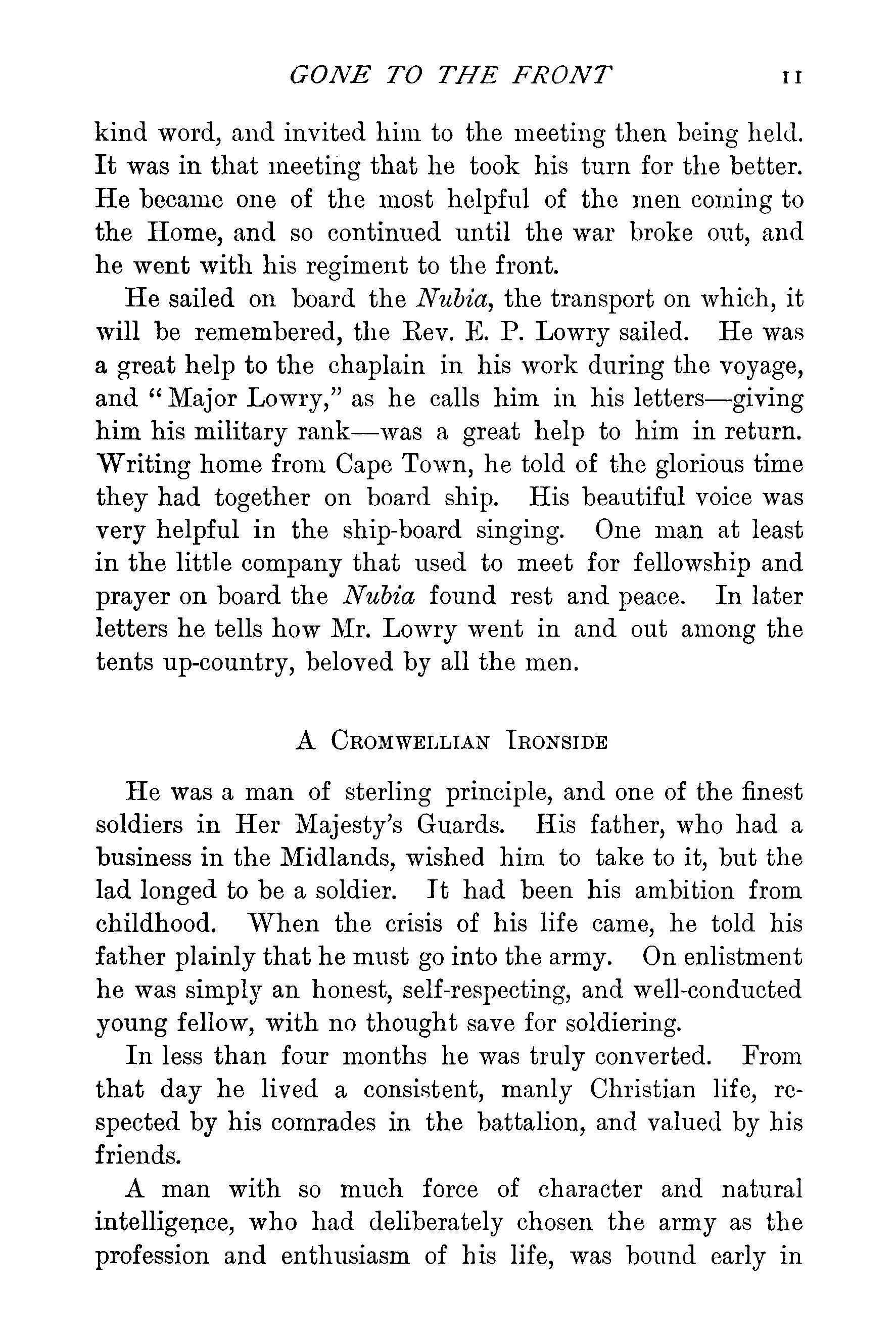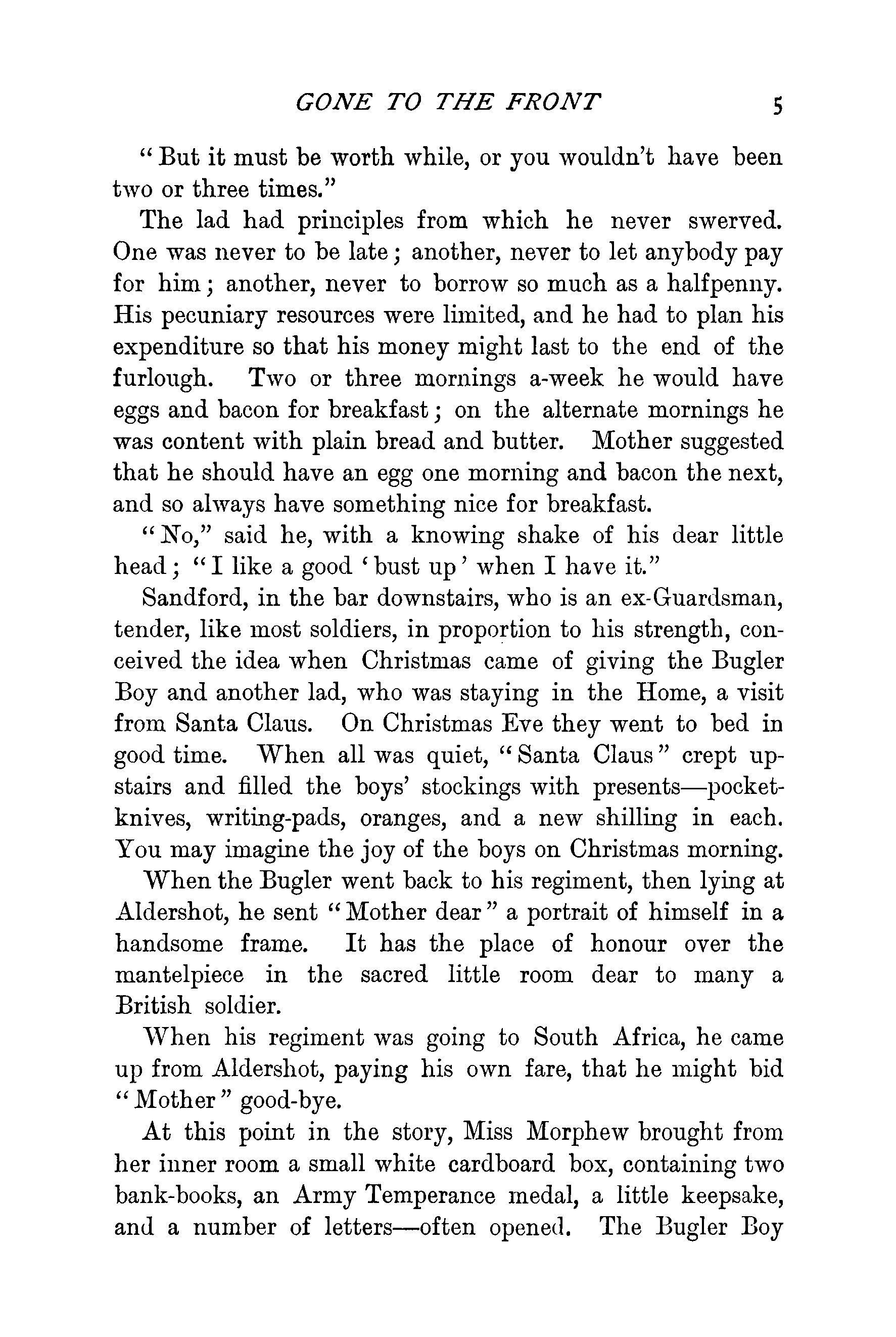 When his regiment was going to South Africa, he came up from Aldershot, paying his own fare, that he might bid " Mother" good-bye.