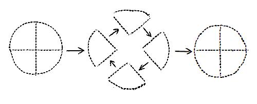This type of lesson organization involves beginning at the beginning or the passage, and moving consecutively from part to part until the whole has been studied. If the passage as-a-whole is conceived as a circle, and each part of the passage as a segment of the circle, this kind of lesson structure may be diagrammed thus:7