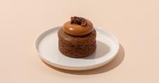 A golden sticky date cake topped with a generous dollop of salted caramel and garnished with a pitted date. Warm up to create the perfect self-saucing indulgence.