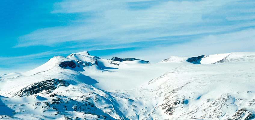 Nedenfor finner du turbeskrivelsen av en rundtur i Jotunheimen. Følg med på kartet i figur 1.22 og på bildet ovenfor. Du kan også se turområdet i 3D på en video på adressen www.norgei3d.no/, eller ved å søke på nettet med «Norge i 3D med Norkart Virtual Globe». Du kan også kikke på området rundt Galdhøpiggen i Google Earth.