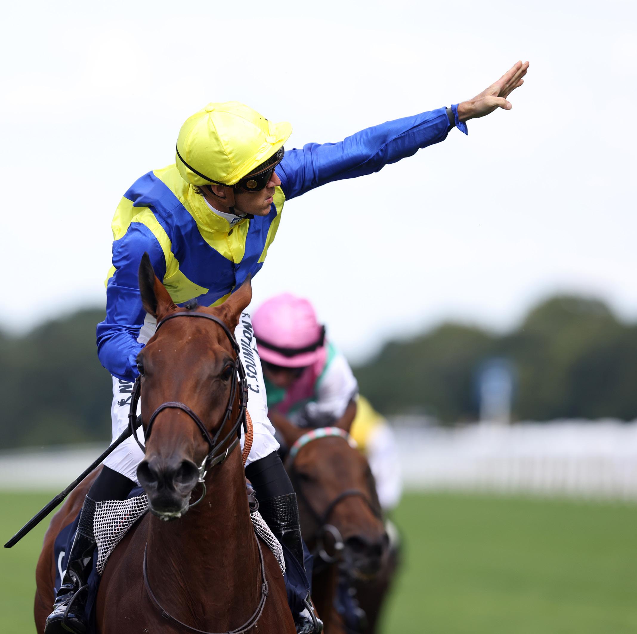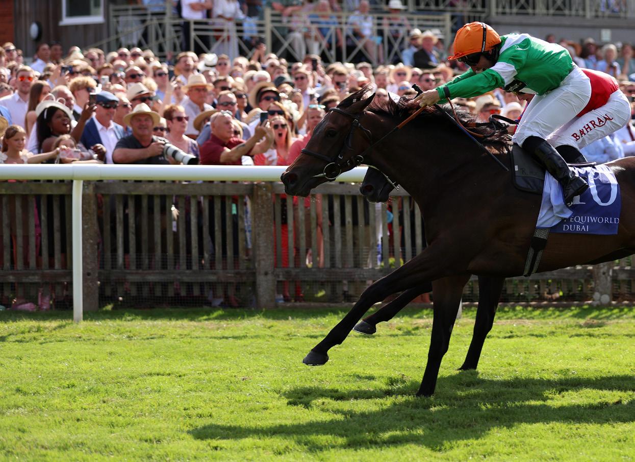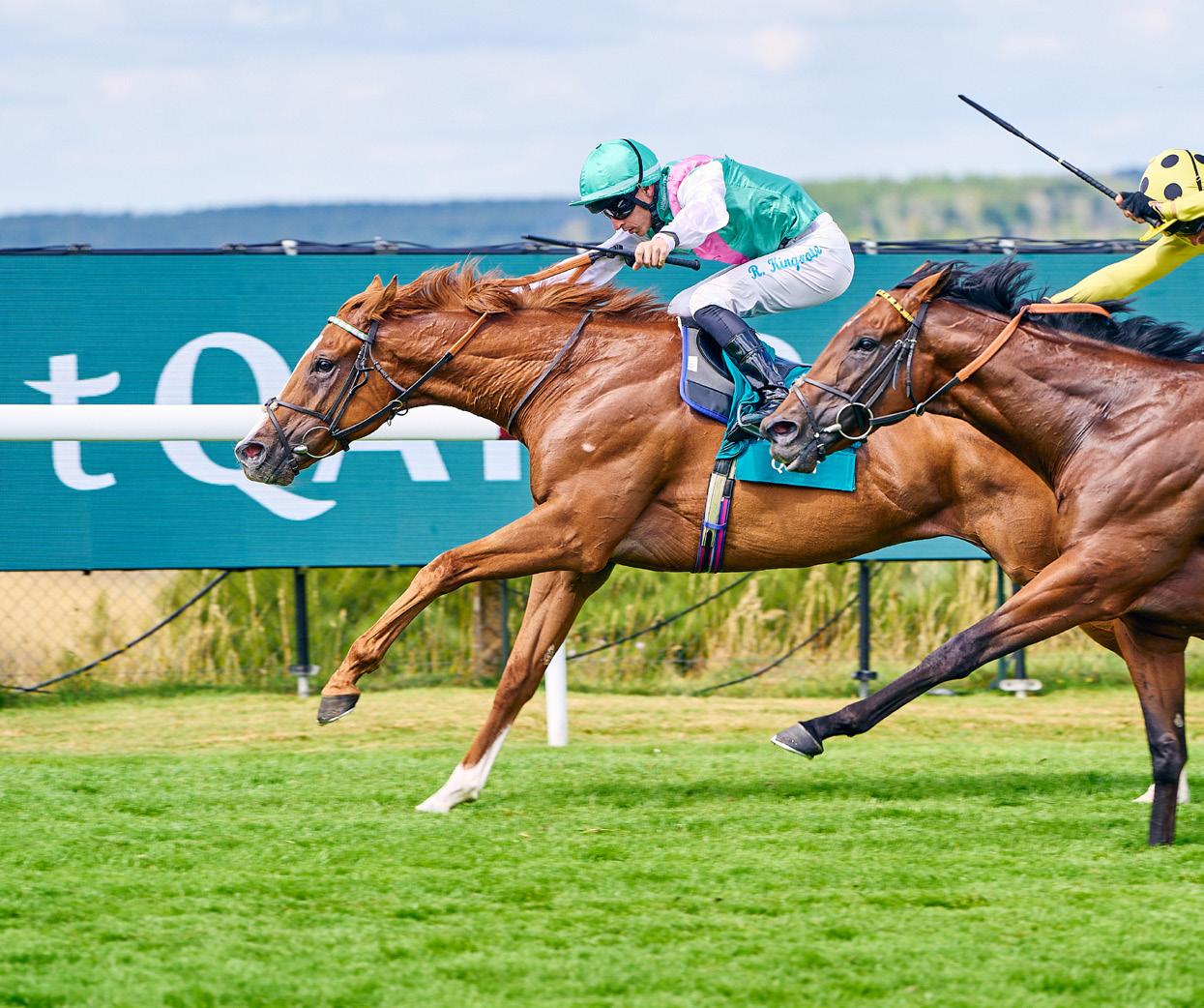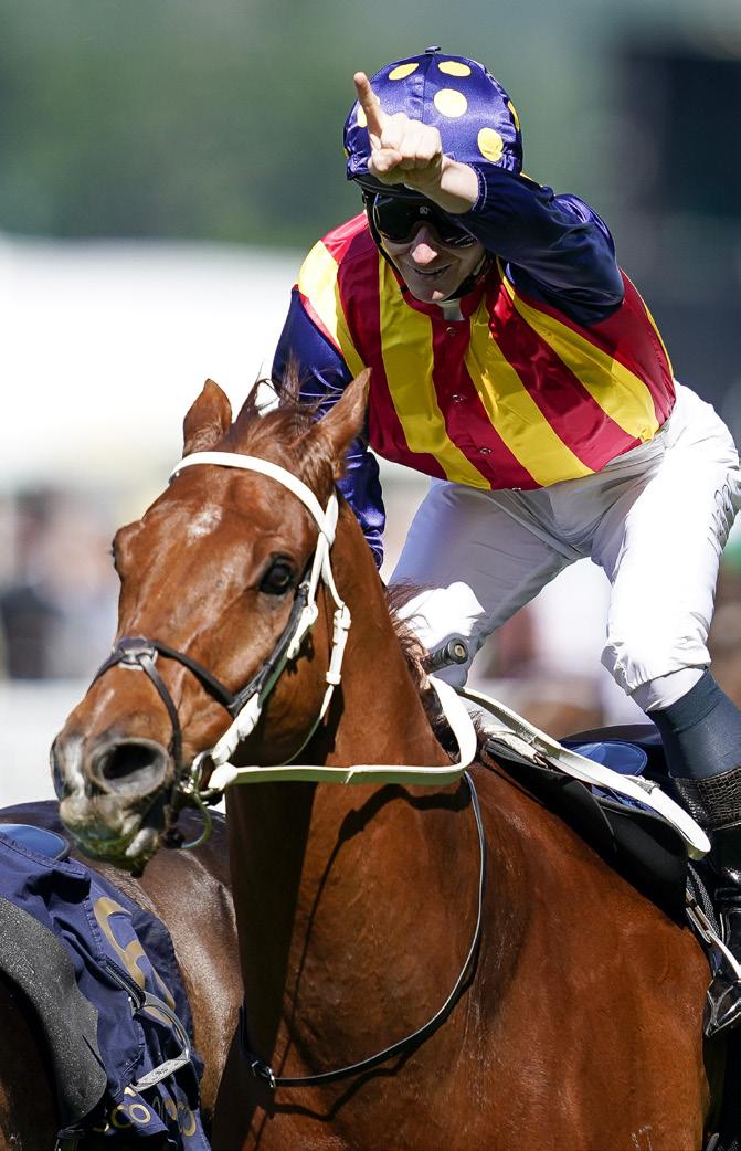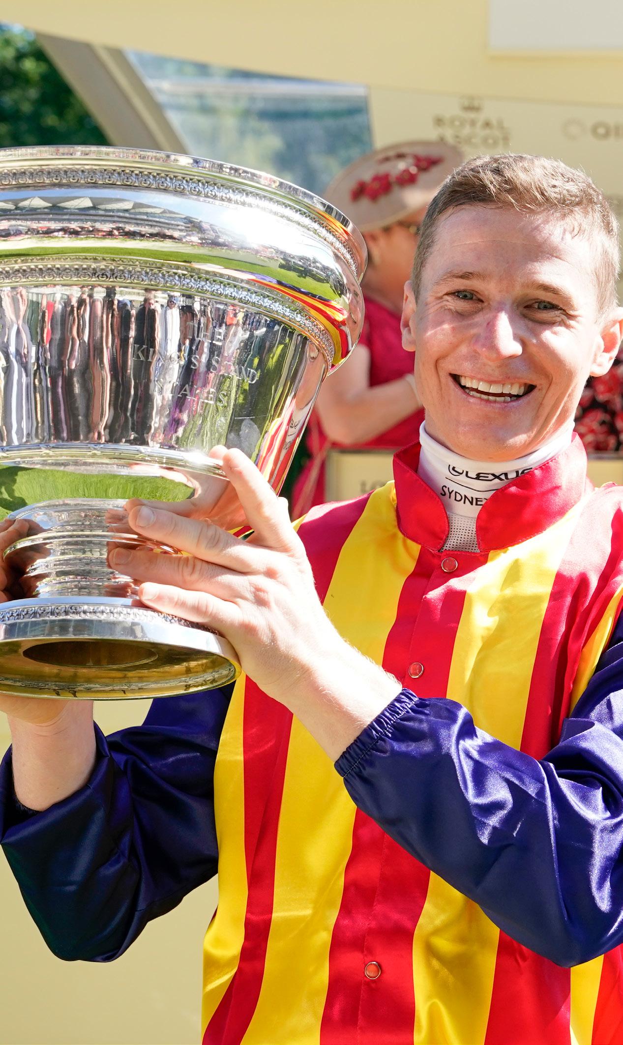 Front Cover: Lazzat (France) winner of the 2025 Queen Elizabeth II Jubilee Stakes for Wathnan Racing (owner), Jerome Reynier (trainer) and James Doyle (jockey). Japanese runner Satono Reve a close second for Hajime Satomi (owner), Noriyuki Hori (trainer) and João Moreira (jockey). Left: James McDonald celebrates after winning the 2022 King’s Stand Stakes on Nature Strip (Australia).
