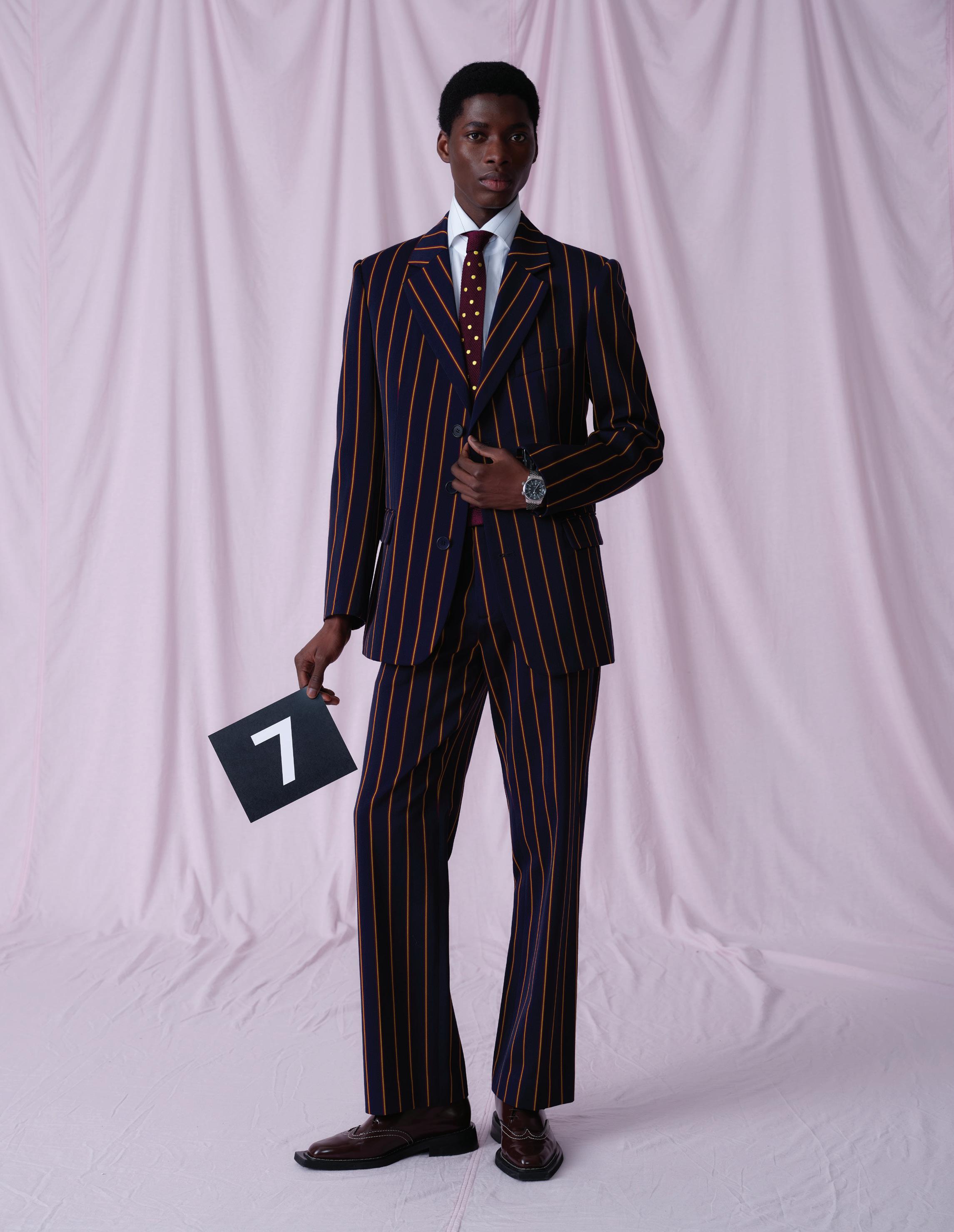 Bold Stripe: VINTAGE VIA. OXFAM Triple Stripe: HUNTSMAN SAVILE ROW