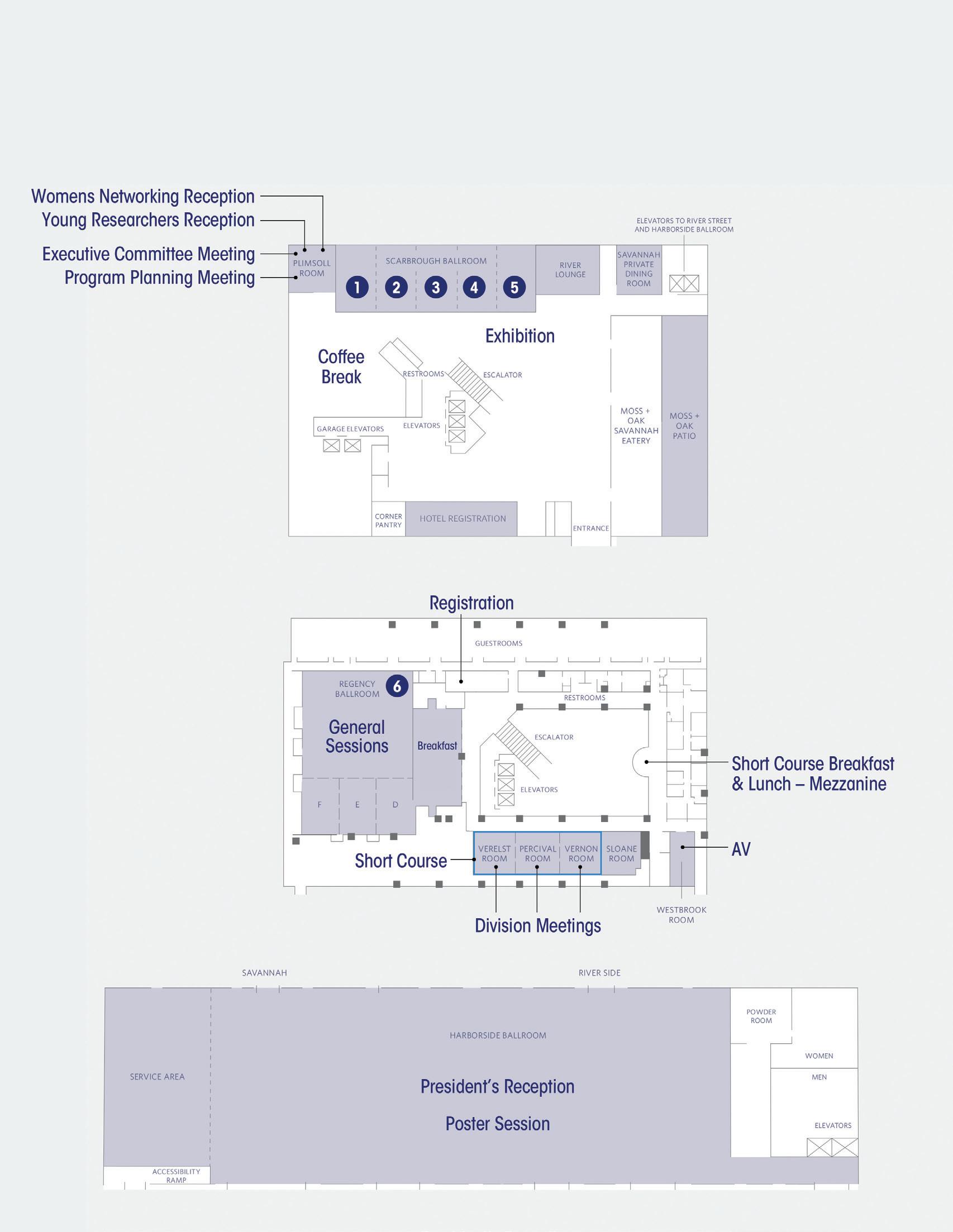 Harborside Ballroom, River Street Level (Sunday during Presidents Reception) Scarbrough Ballroom Foyer, Lobby Level (Monday-Tuesday)