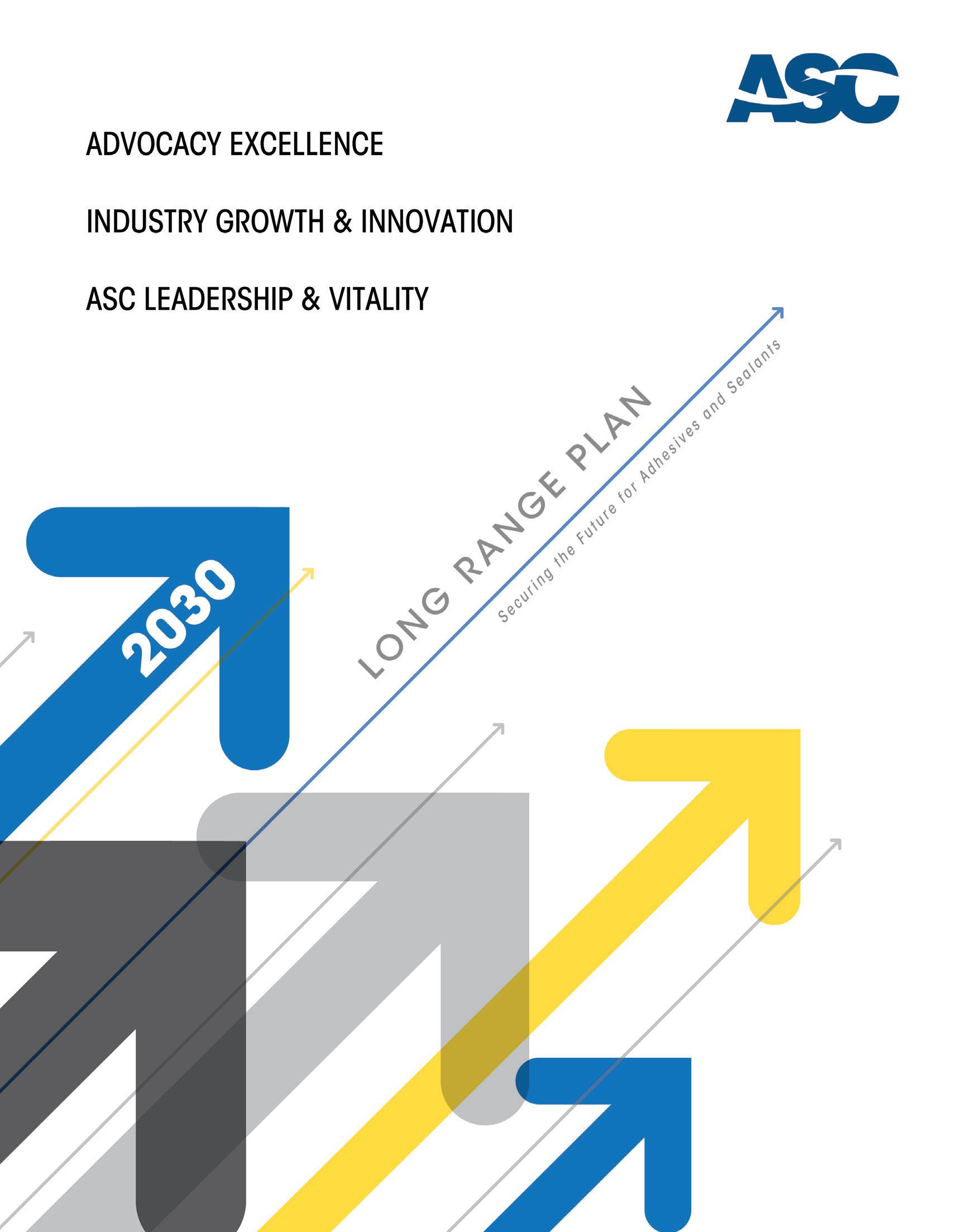 In the following pages, we are introducing ASC’s new three-year strategic plan — a forward-looking commitment to amplify our industry’s impact, strengthen the competitive position of our member companies, and ensure ASC remains the united voice and driving force for adhesives and sealants in a rapidly evolving global landscape.