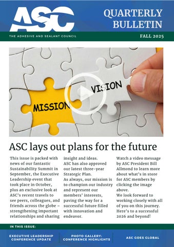 This issue is packed with news of our fantastic Sustainability Summit in September, the Executive Leadership event that took place in October, plus an exclusive look at ASC’s recent travels to see peers, colleagues, and friends across the globe –strengthening important relationships and sharing