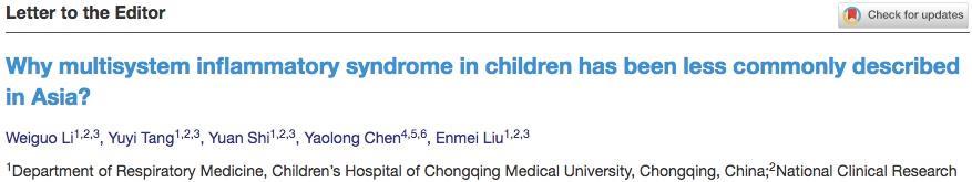 Why COVID-19 is less frequent and severe in children: a narrative review; Reza Sinaei, Sara Pezeshki, Saeedeh Parvaresh, Roya Sinaei; Received: 19 May 2020 / Accepted: 8 September 2020 © Children’s Hospital, Zhejiang University School of Medicine 2020 World Journal of Pediatrics