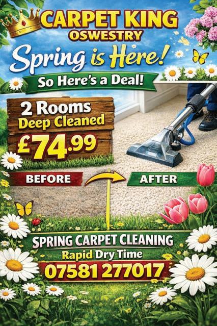 Over 30 rolls of carpet in stock! Many roll ends half price! Vinyls, LVT, Blinds and Curtains. A family business est. 1982. Victoria Road, Oswestry www.jandicarpets.co.uk 01691 656843