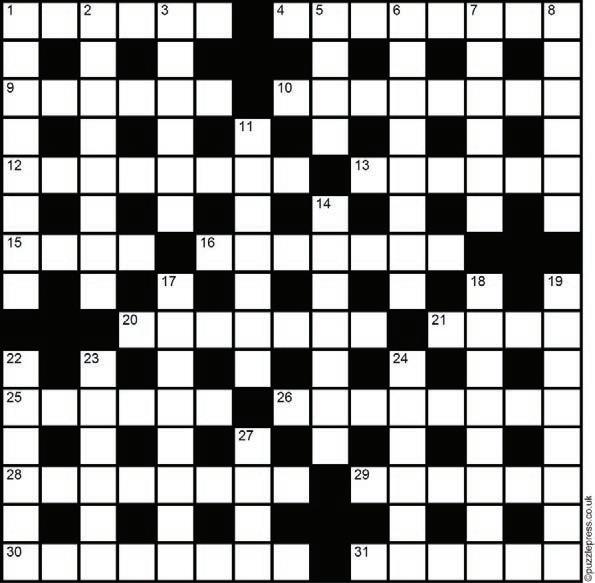 9 El Niño, 10 In spades, 12 Hispanic, 13 Greene, 15 Nile, 16 Corking, 20 Iguanas, 21 Flee, 25 Harlow, 26
