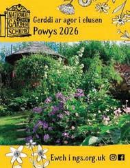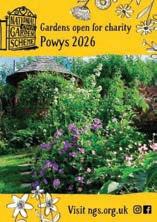 After such a wet and dismal winter, any glimpse of sunshine is a real boost, especially to the gardeners amongst us! Spring brings the promise of new life and the chance to get out and enjoy the seasons again. The sight of the 2026 National Garden Scheme Powys booklets (this year bi-lingual for the first time) hot-offthe-press is very welcome, and an opportunity to plan your garden visits. Pick yours up from garden centres, TICs/libraries and supermarkets.
