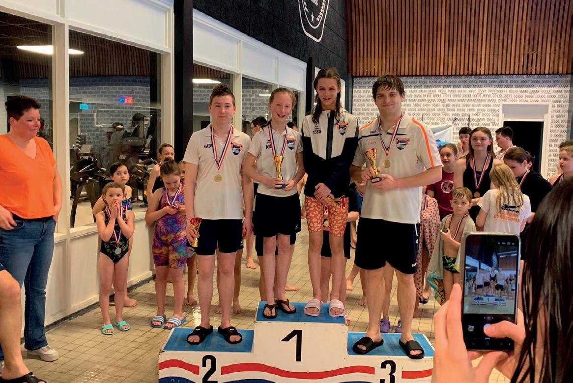 vlinderslagen en hier en daar een iets minder elegante (maar minstens zo enthousiaste) schoolslag elkaar in rap tempo opvolgden. Het publiek zat er klaar voor. Ouders, vrienden en teamgenoten moedigden de zwemmers aan. De spanning steeg per serie, zeker toen de snelste zwemmers het tegen elkaar opnamen. Aan het eind van de dag, na heel wat meters, liters water en aanmoedigingen, konden de kampioenen gekroond worden. Maar eerlijk is eerlijk: eigenlijk was iedereen een winnaar. Want of je nu met een medaille naar huis ging of met een grote glimlach en licht gerimpelde vingers - het ging om de gezelligheid, de sportiviteit en natuurlijk de traditie. Eén ding is zeker: de clubkampioenschappen in Melick blijven een jaarlijks hoogtepunt waar nog lang over nagepraat zal worden. En de zwemmers? Die liggen waarschijnlijk nu nog bij te komen… of stiekem alvast te trainen voor volgend jaar.