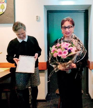 NIEUWSTADT - Zondag 22 maart heeft de inauguratie plaatsgevonden van Mevrouw Barbarina Hensgens als beschermvrouwe van het Gemengd Zangkoor St. Cecilia. Aansluitend aan de H. mis van die zondag kwam het koor bij elkaar in het gemeenschapshuis voor deze feestelijke gebeurtenis. Na een kleine toespraak van de voorzitter ontving Mevrouw Hensgens, in het bijzijn van haar familie, een oorkonde als teken van haar verbondenheid met het zangkoor. Gemengd Zangkoor St. Cecilia is vereerd en dankbaar met haar beschermvrouwe.