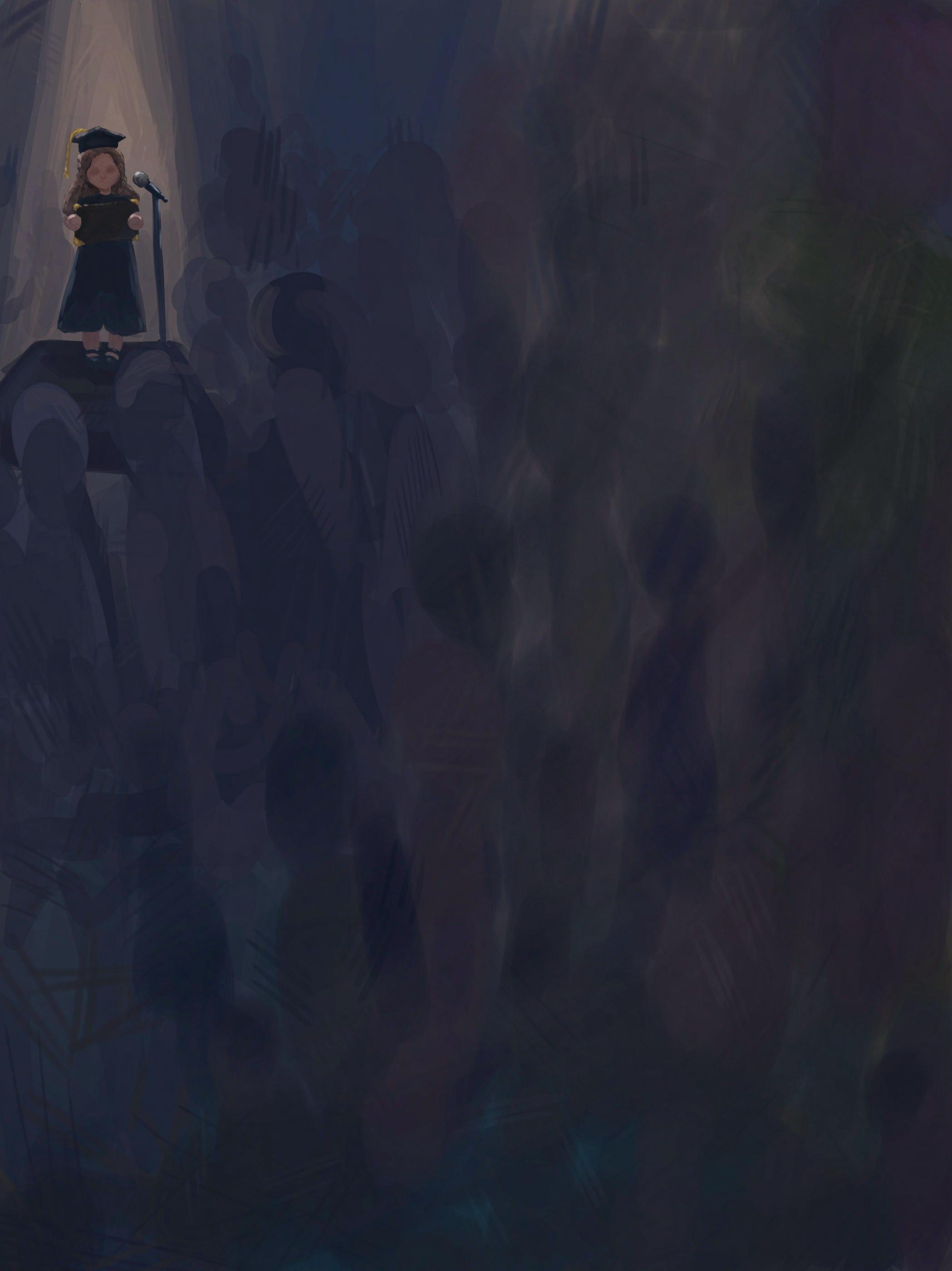 I knew that I did not t in with that tearful crowd. I had barely known my grandmother, and I had no deep memories to cycle through when reminiscing about her. But I wanted to join in with their emotions. It felt like a connection to her, somehow. So when the funeral director laid the last cloth onto her body, and closed the casket shut, I wept openly along with everybody else. Cradling that secret third thing close to my chest, I hoped that for even a moment, it could measure up to the sorrow of anyone who mattered to my grandmother.