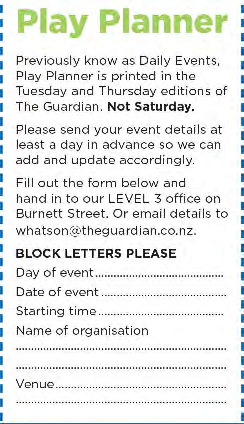 VENUE: Ashburton Senior Centre, 206 Cameron Street